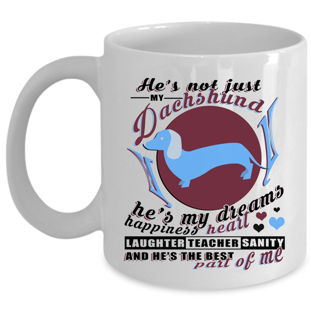 He's My Dreams Happiness Heart Coffee Mug, He's Not Just My Dachshund Cup