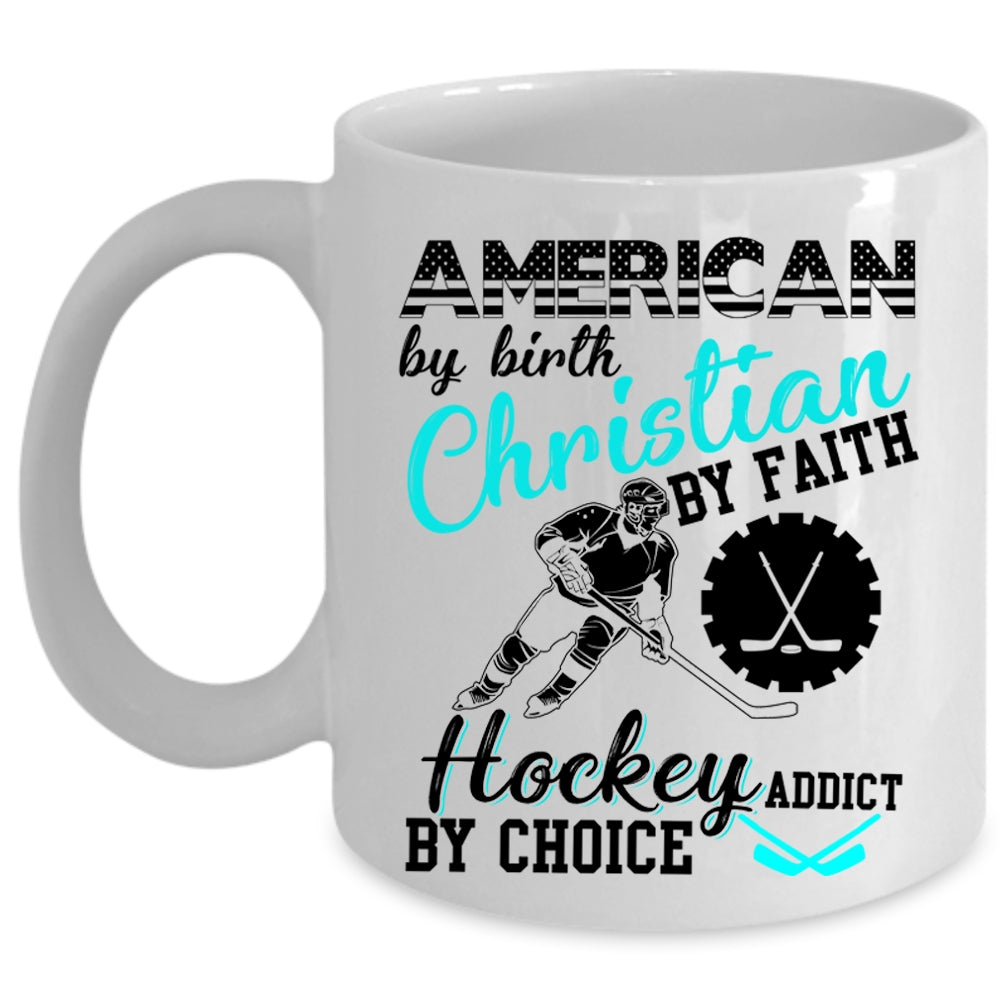 Hockey Addict By Choice Coffee Mug, American By Birth Cup