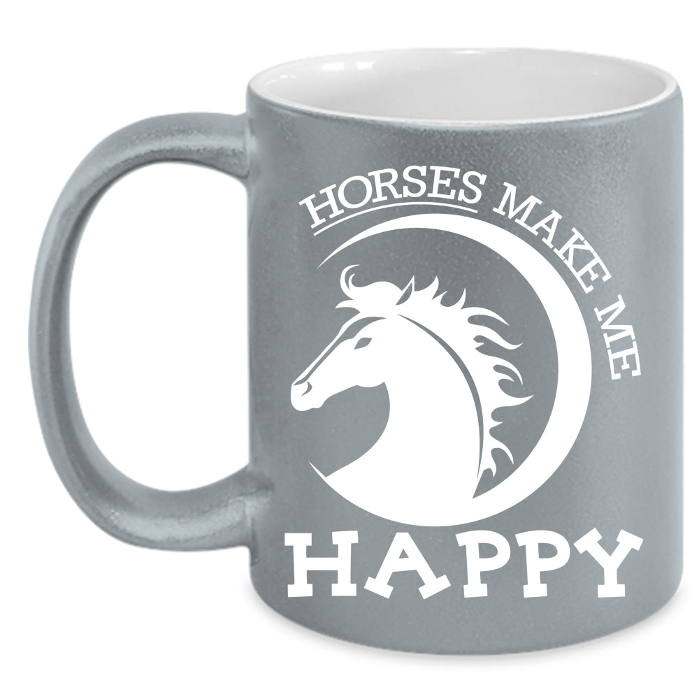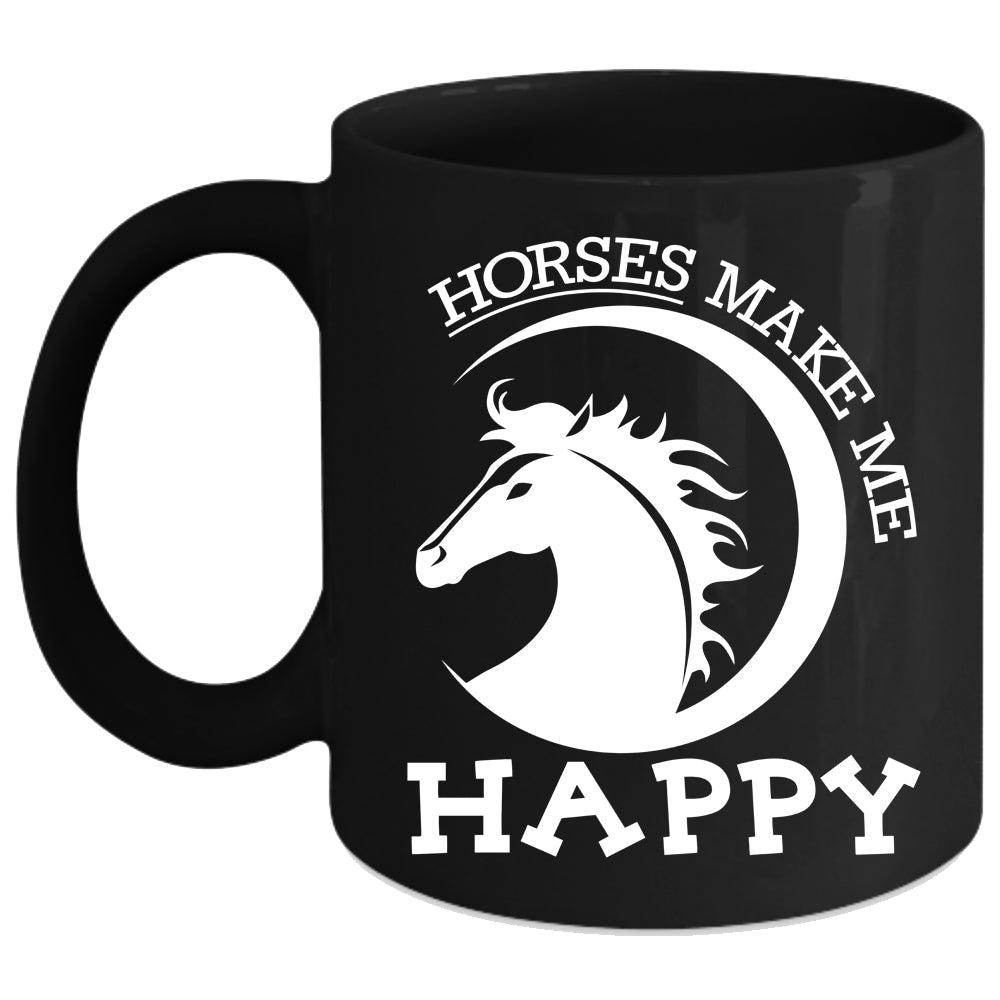 Horses Make Me Happy Coffee Mug, Cute Gift For Equestrians Coffee Cup