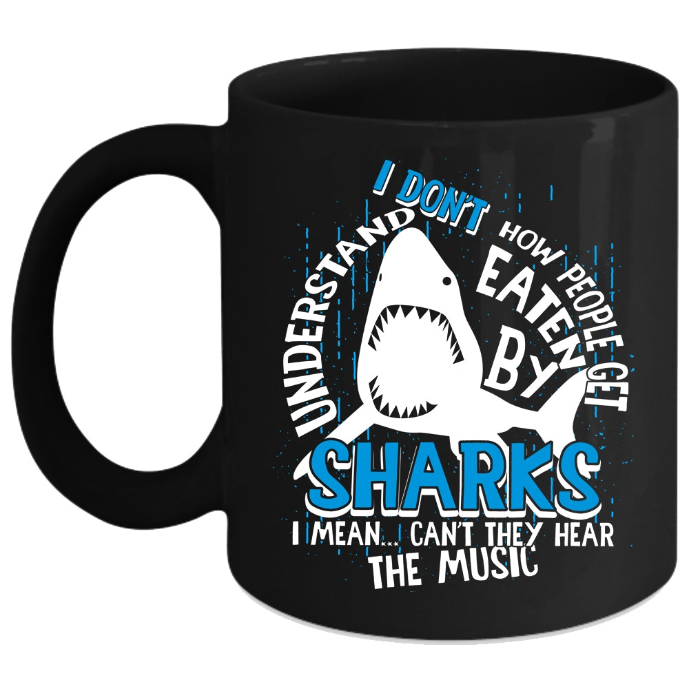 How People Get Eaten By Sharks Coffee Mug, I Mean Can't They Hear The Music Coffee Cup