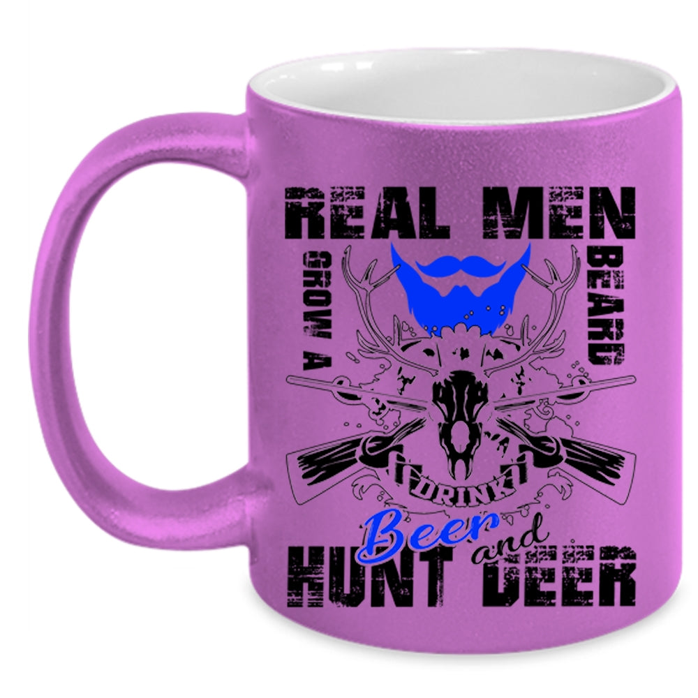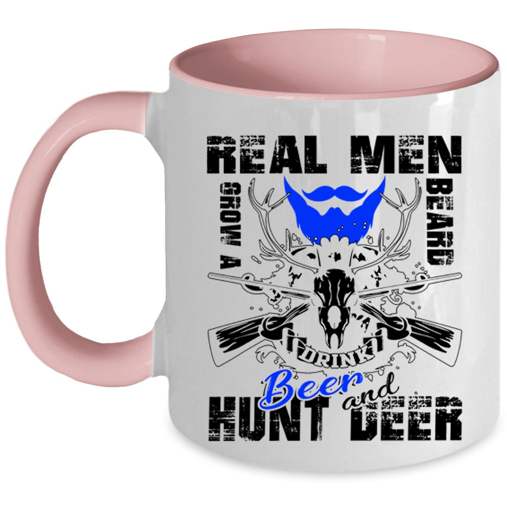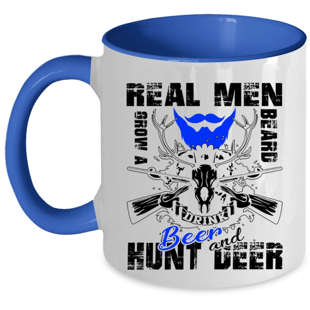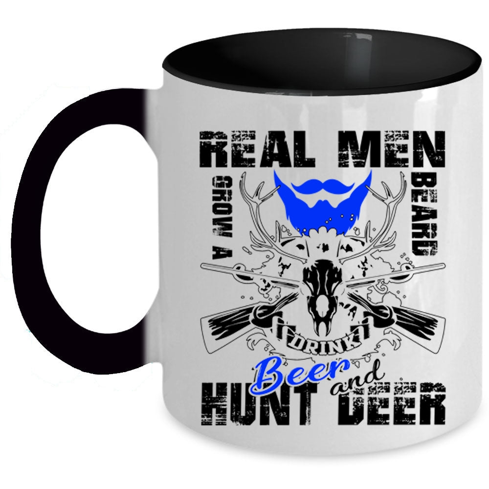 Hunt Deer Coffee Mug, Real Men Grow A Beard Drink Beer Accent Mug