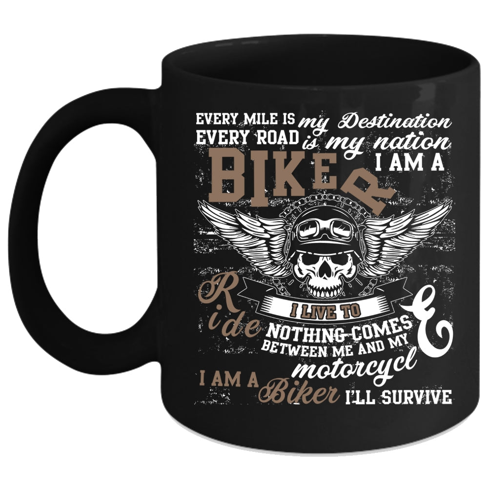 I Am A Biker Coffee Mug, I Live To Ride Coffee Cup