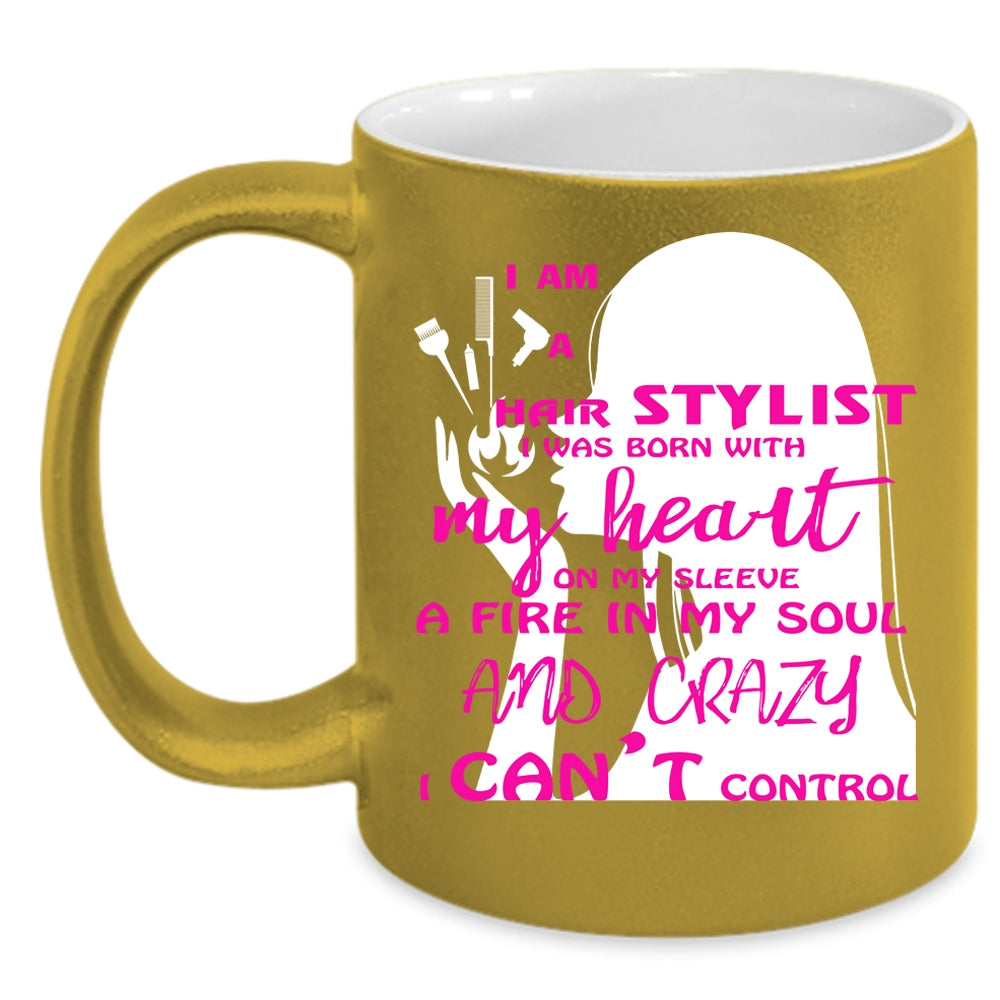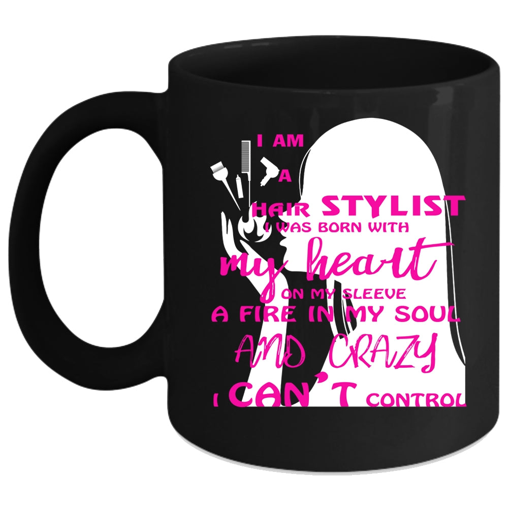 I Am A Hair Stylist Coffee Mug, I Was Born With My Heart Coffee Cup
