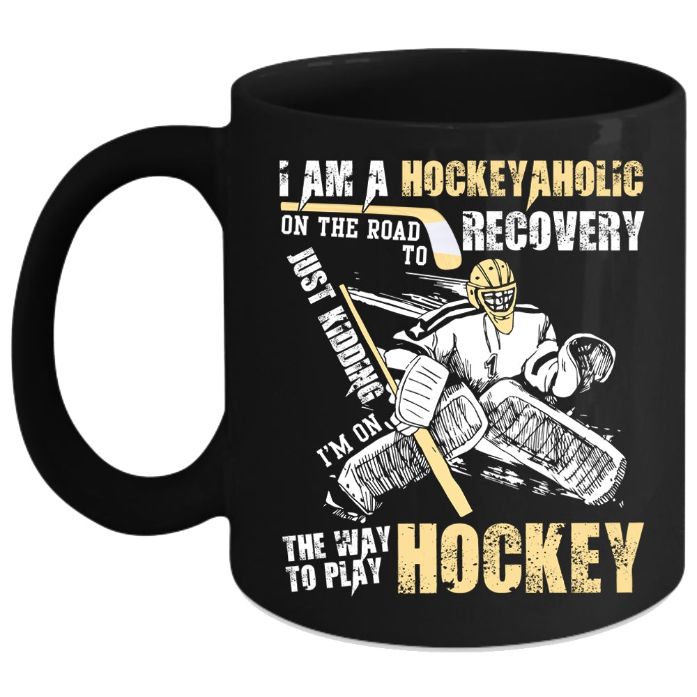 I Am A Hockeyaholic Coffee Mug, I Love Playing Hockey Coffee Cup