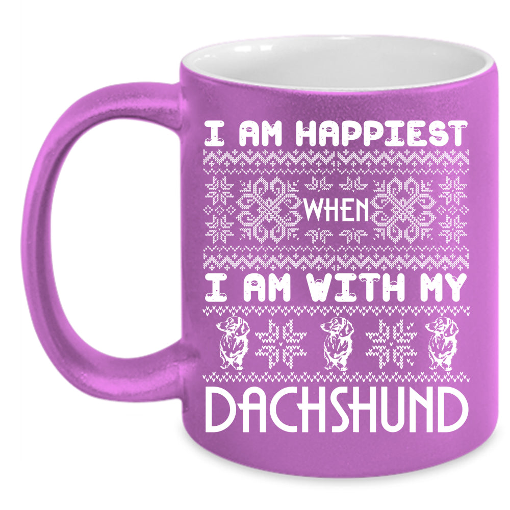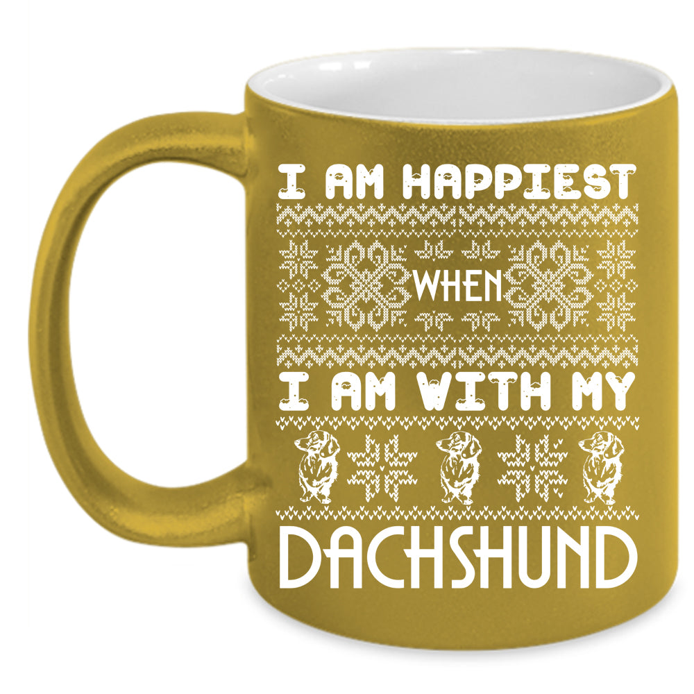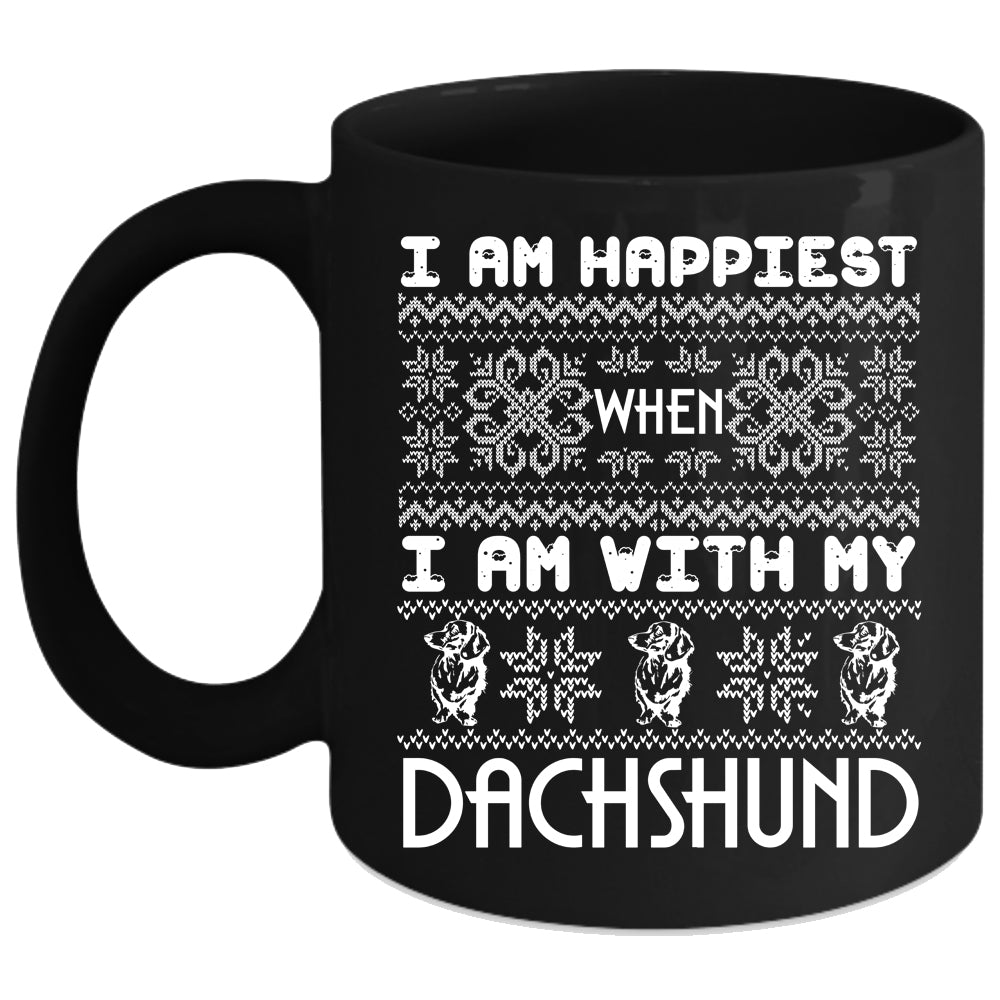 I Am Happinest Coffee Mug, I Am With My Dachshund Coffee Cup