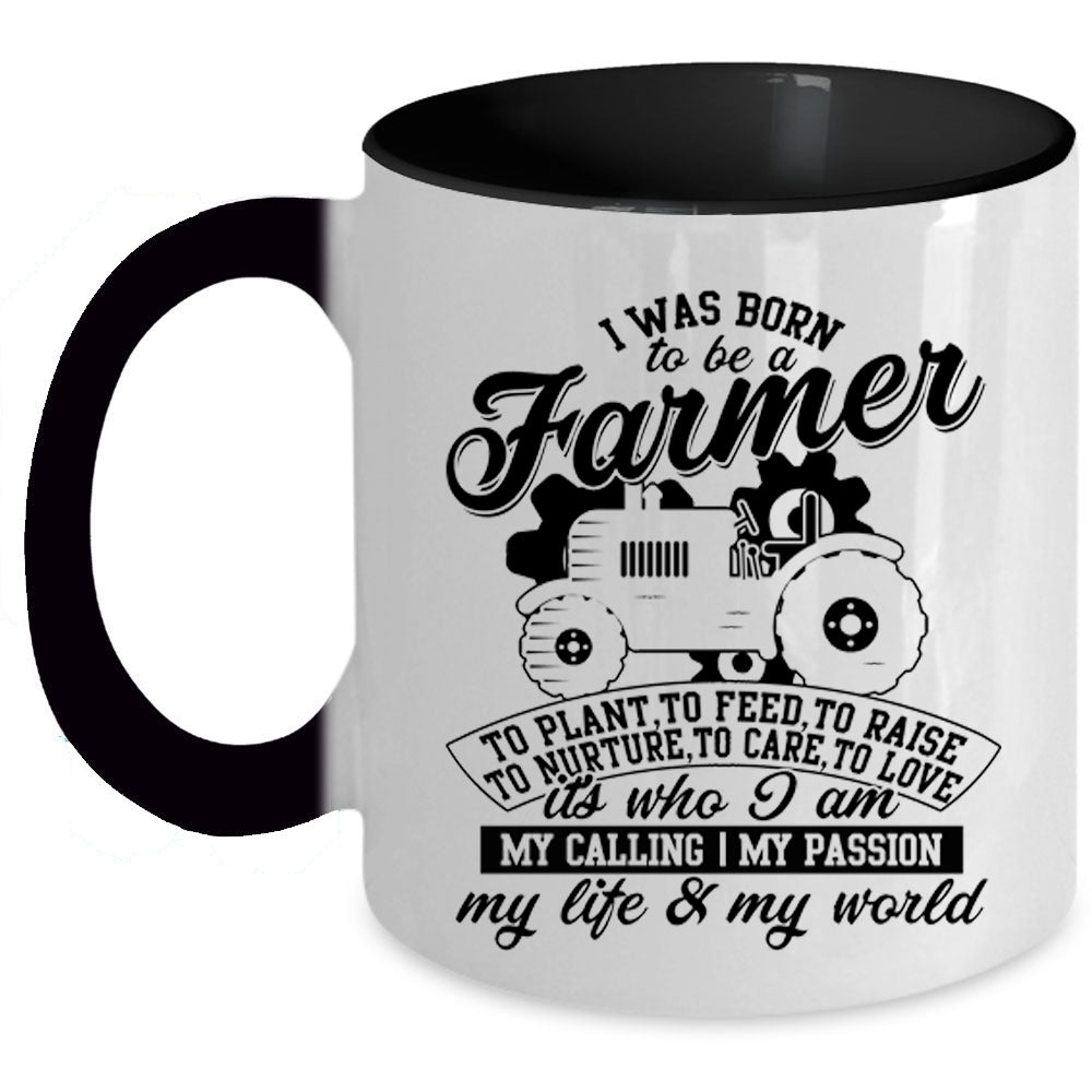 I Am My Life And My World Coffee Mug, I Was Born To Be A Farmer Accent Mug