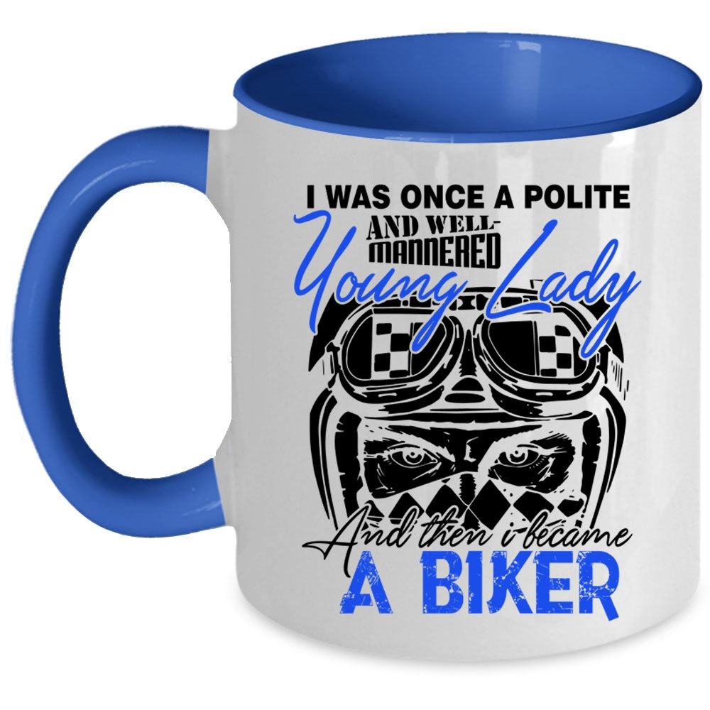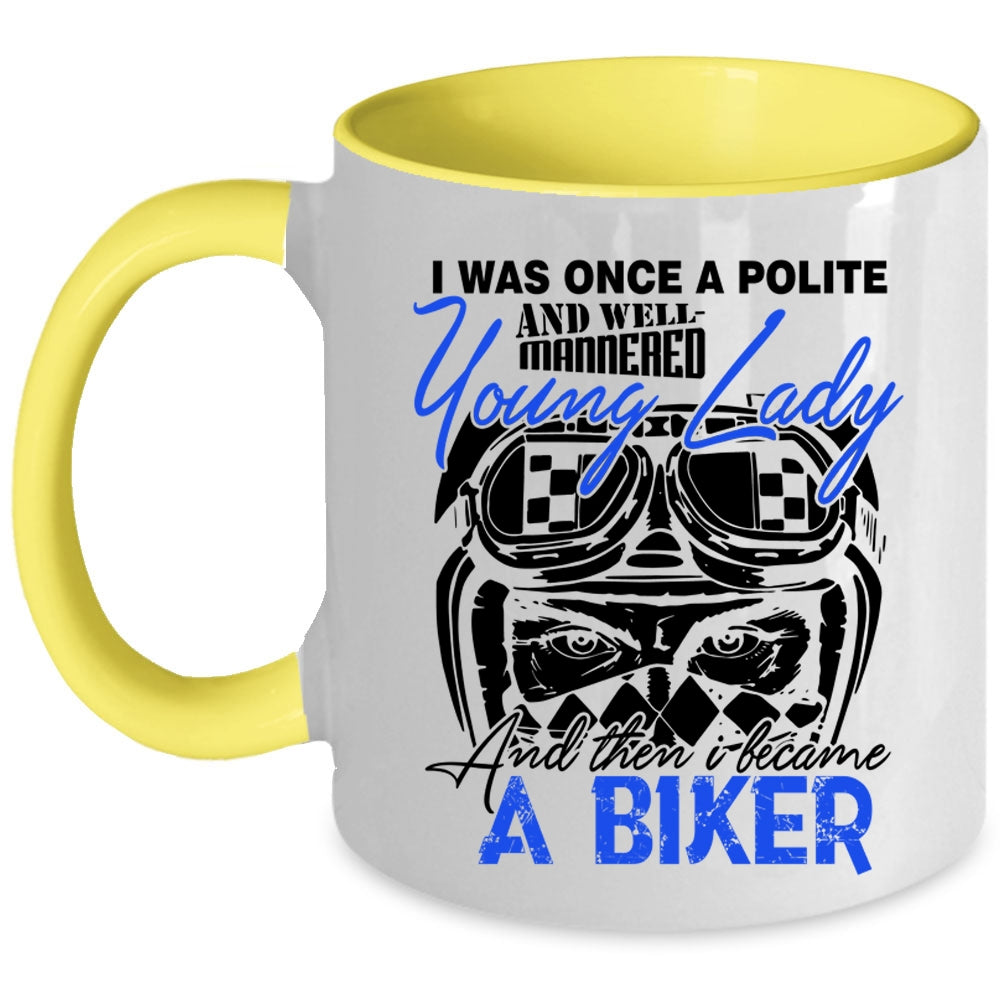 I Became A Biker Coffee Mug, Well Maaered Young Lady Accent Mug