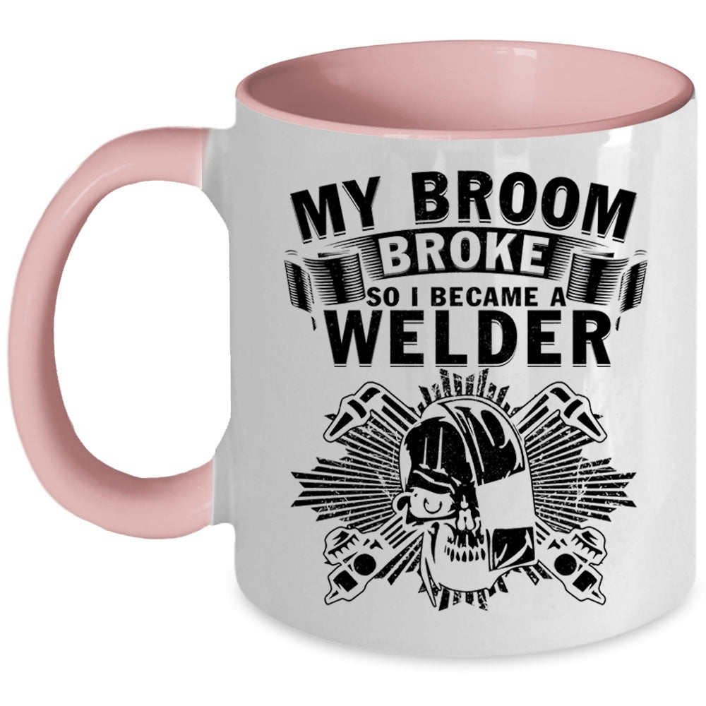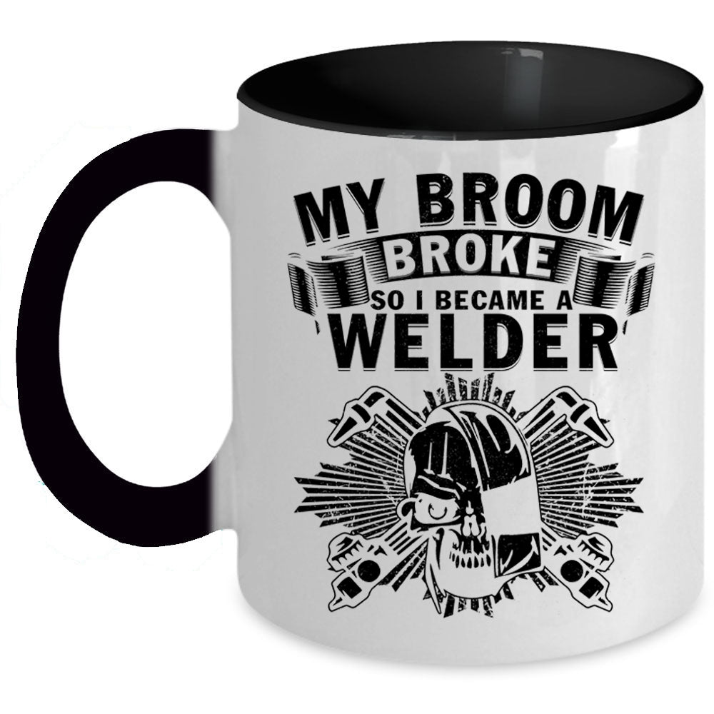 I Became A Welder Coffee Mug, My Broom Broke Accent Mug