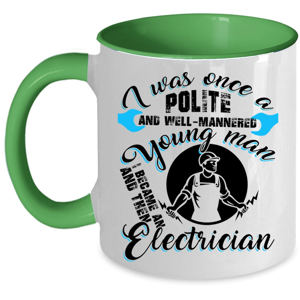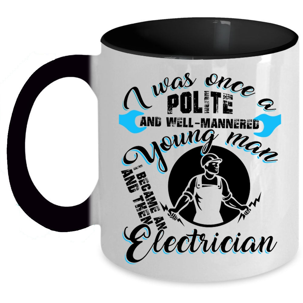 I Became An Electrician Coffee Mug, Well Mannered Young Man Accent Mug