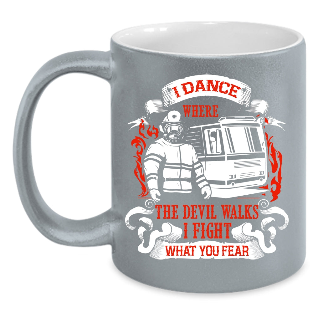 I Dance Where The Devil Walks Coffee Mug, Funny Firefighter Coffee Cup