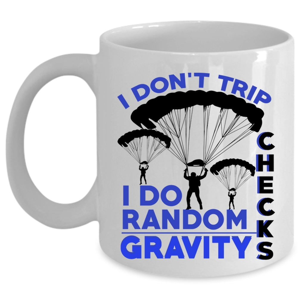 I Do Random Gravity Checks Coffee Mug, I Don't Trip Cup