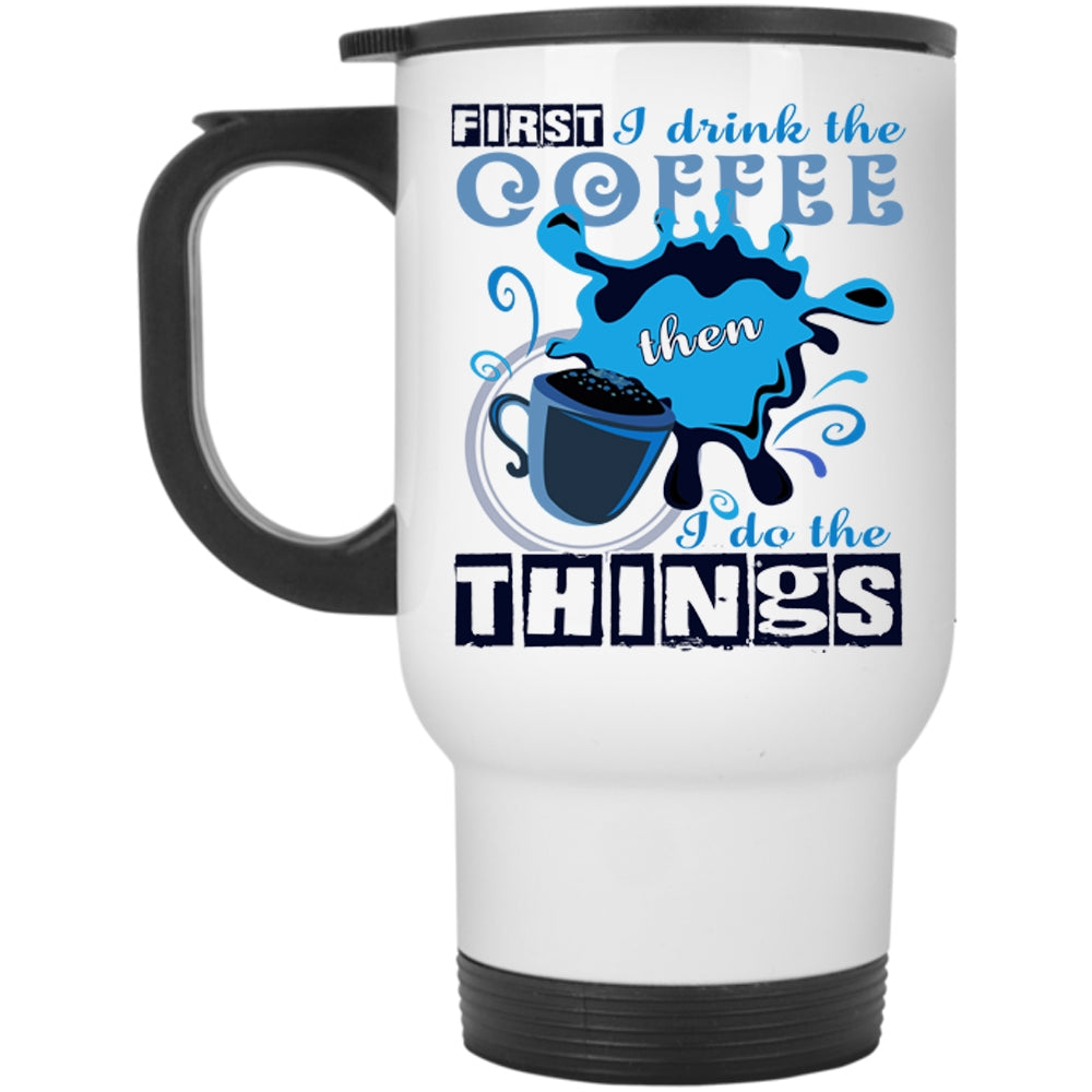I Do The Things Travel Mug, First I Drink The Coffee Mug