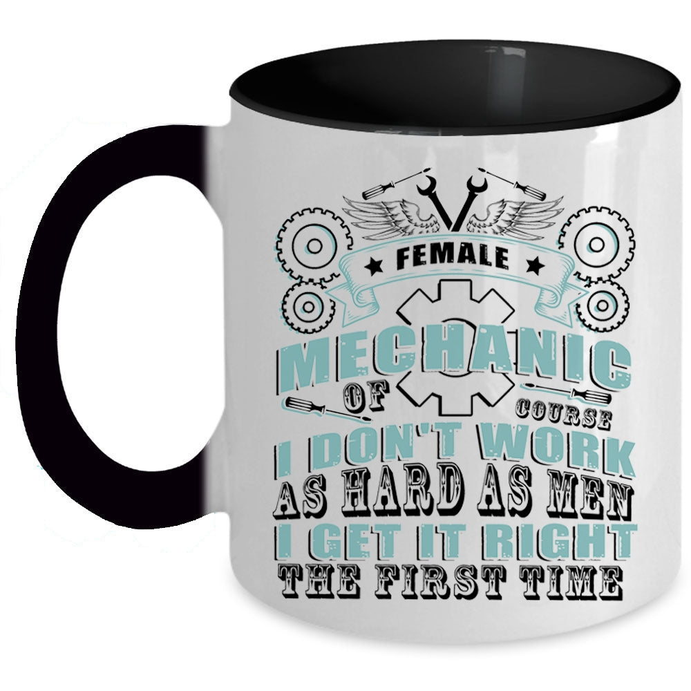 I Don't Work As Hard As Men Coffee Mug, Female Mechanic Accent Mug