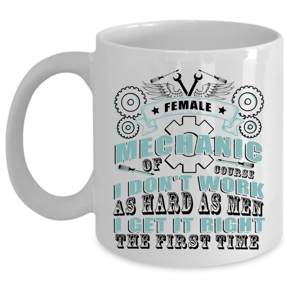I Don't Work As Hard As Men Coffee Mug, Female Mechanic Cup
