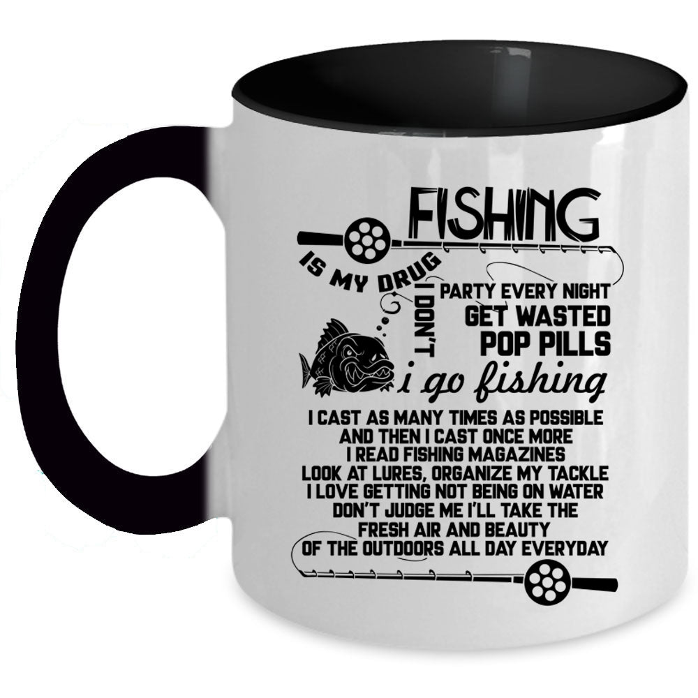 I Go Fishing Coffee Mug, Fishing Is My Drug Accent Mug