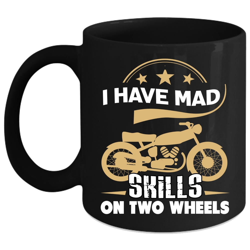I Have Mad Skills On Two Wheels Coffee Mug, Cool Biker Coffee Cup