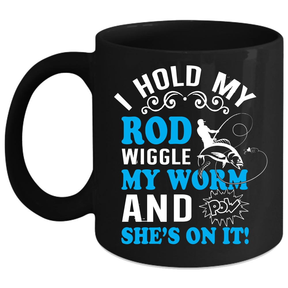 I Hold My Rod Wiggle My Worm Coffee Mug, Funny Fishing Coffee Cup