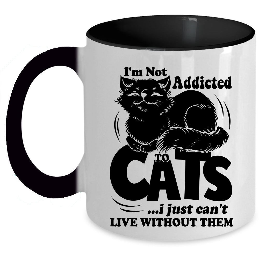 I Just Can't Live Without Them Coffee Mug, I'm Not Addicted To Cats Accent Mug