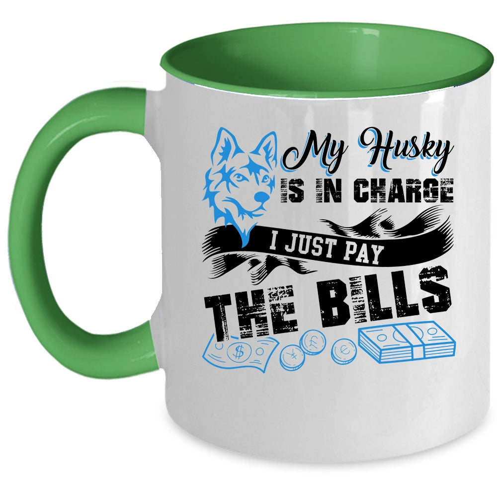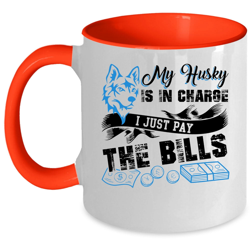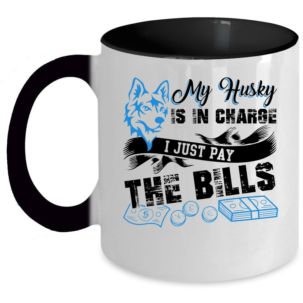 I Just Pay The Bills Coffee Mug, My Husky Is In Charge Accent Mug