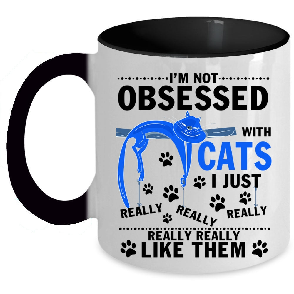 I Just Really Like Them Coffee Mug, I'm Not Obsessed With Cats Accent Mug