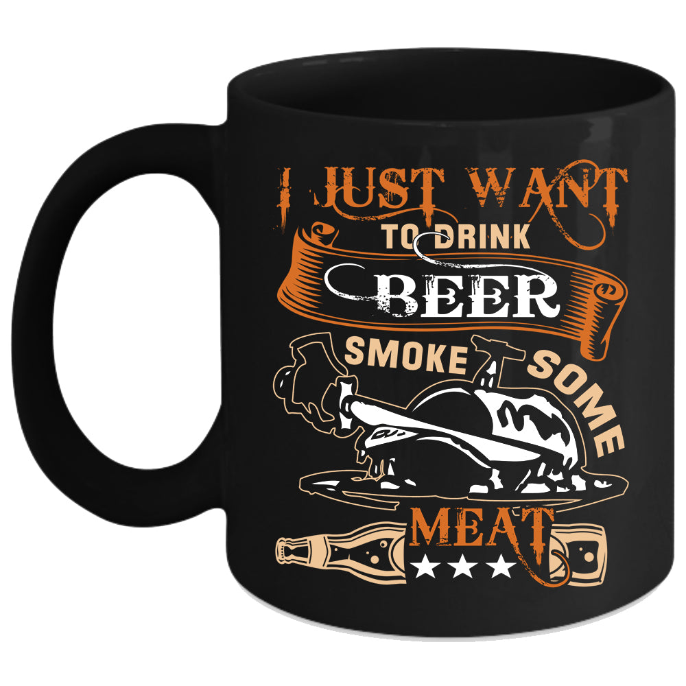 I Just Want To Drink Beer Smole Some Meat Coffee Mug, Funny Coffee Cup
