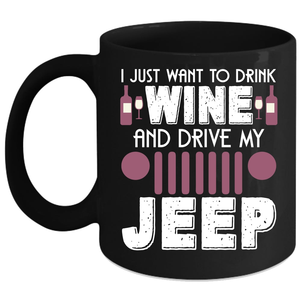 I Just Want To Drink Wine And Drive My Jeep Coffee Mug, Funny Coffee Cup