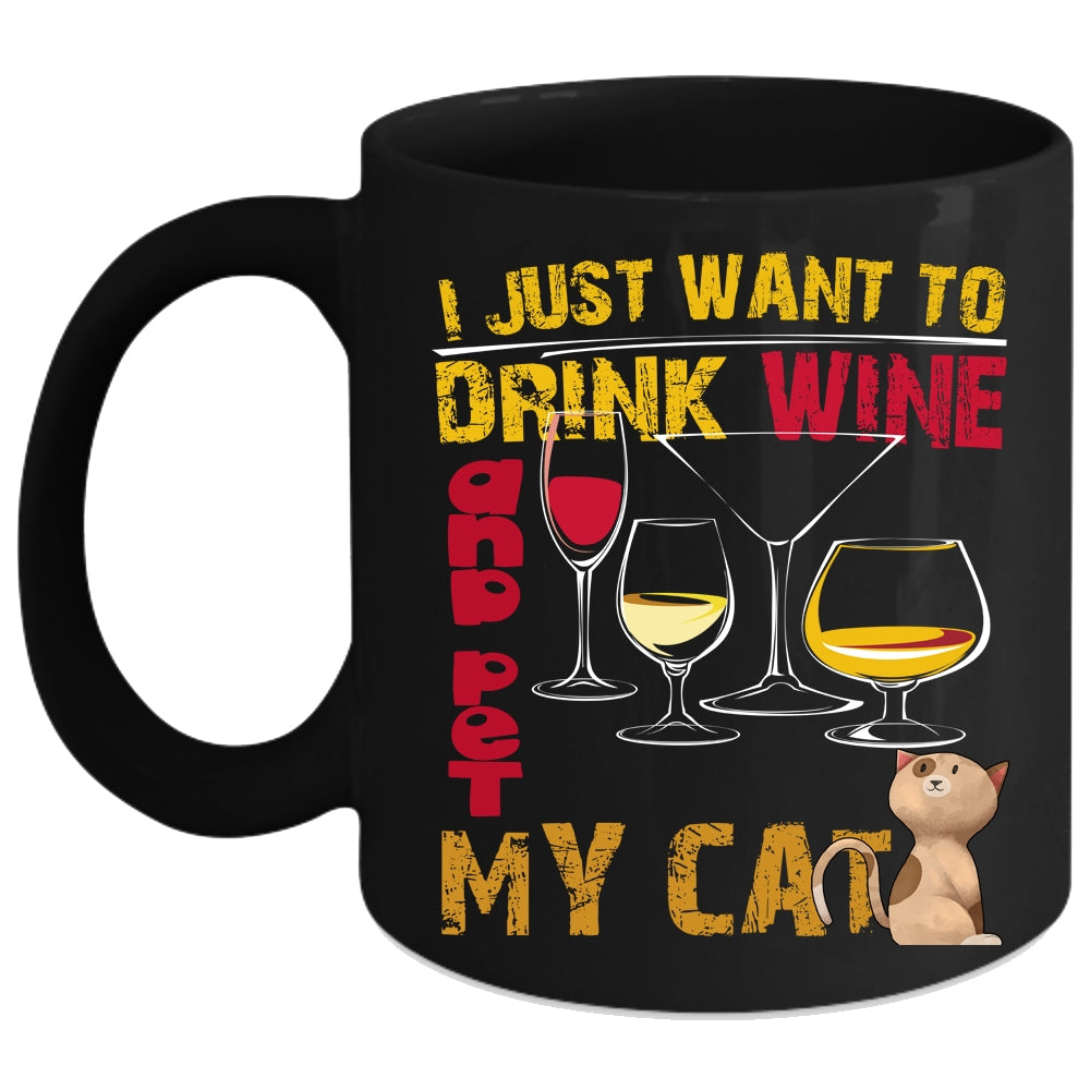 I Just Want To Drink Wine And Pet Coffee Mug, My Cat Coffee Cup