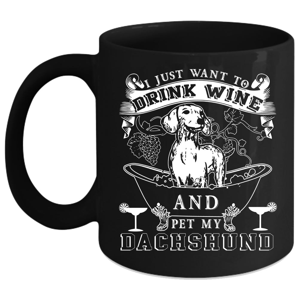 I Just Want To Drink Wine And Pet Coffee Mug, My Dachshund Coffee Cup