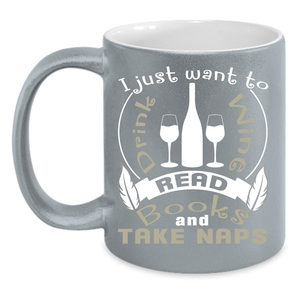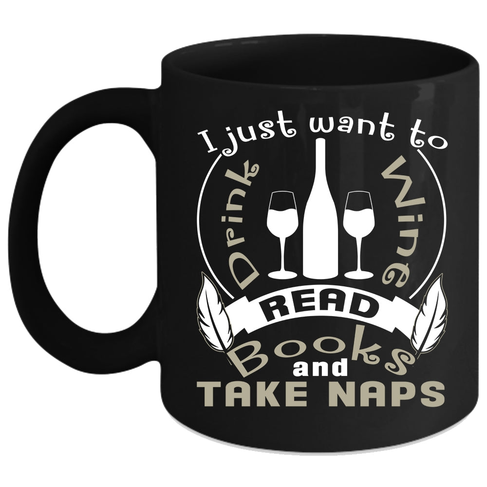 I Just Want To Drink Wine Coffee Mug, Read Books And Take Naps Coffee Cup