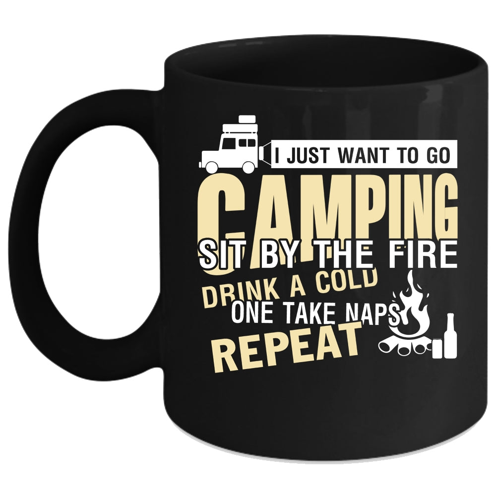 I Just Want To Go Camping Coffee Mug, Sit By The Fire Coffee Cup