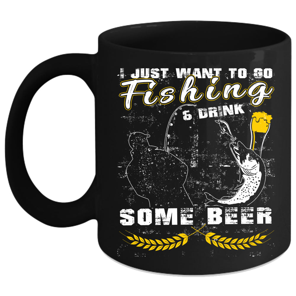 I Just Want To Go Fishing And Drink Beer Coffee Mug, Funny Coffee Cup