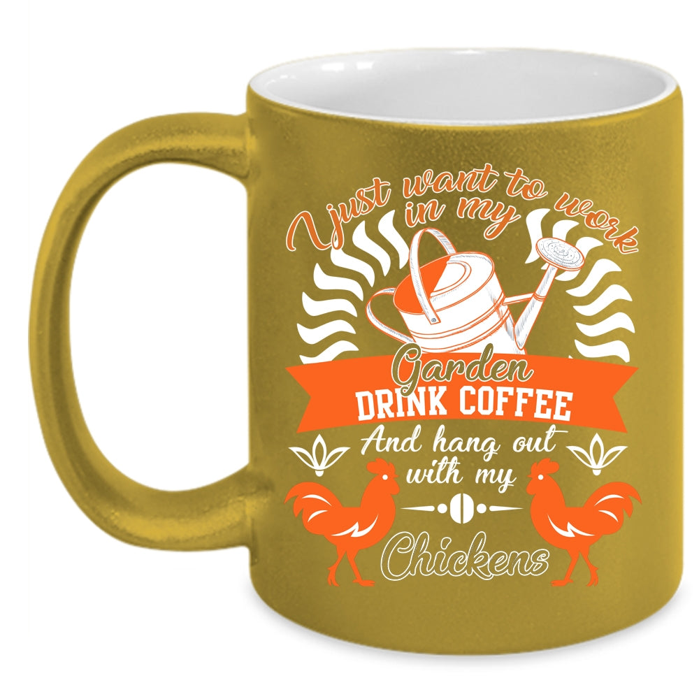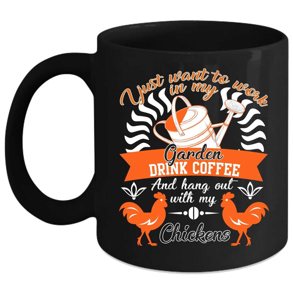 I Just Want To Work In My Garden Coffee Mug, Drink Coffee And My Chickens Coffee Cup