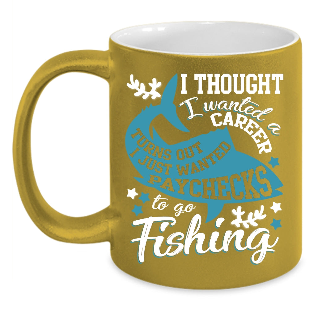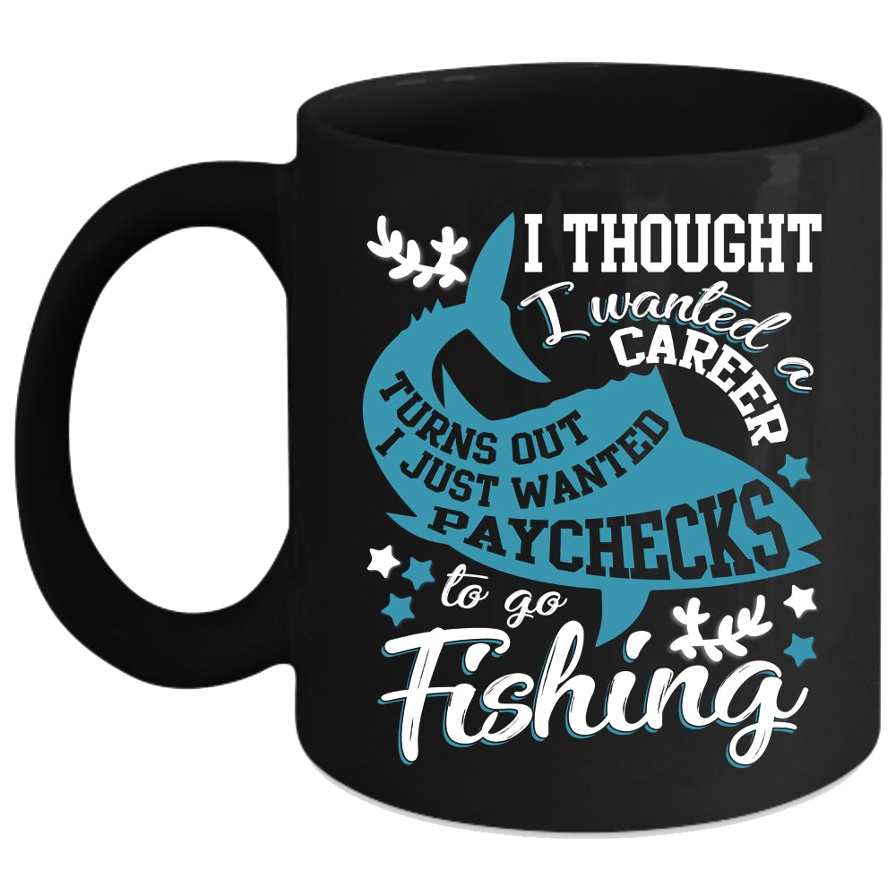 I Just Wanted Paychecks To Go Fishing Coffee Mug, Cool Fishing Coffee Cup