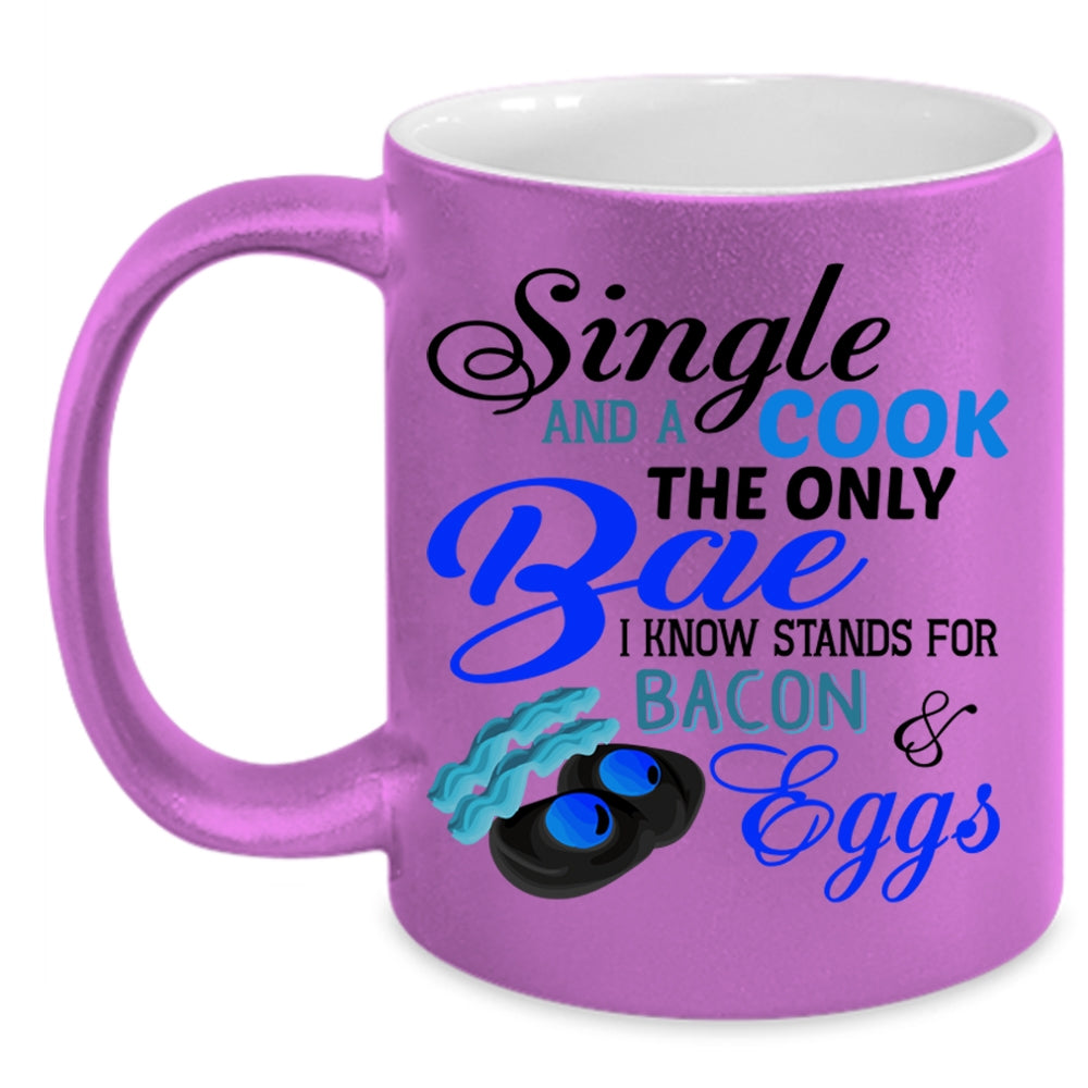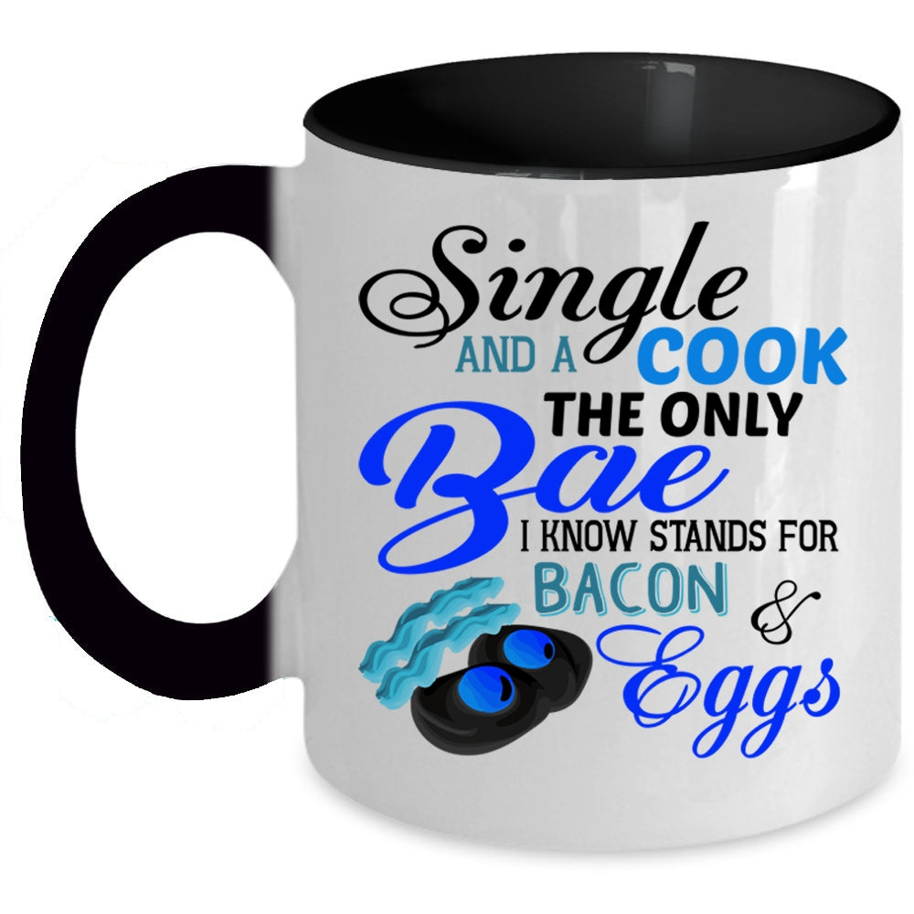 I Know Stands For Bacon And Eggs Coffee Mug, Single And A Cook The Only Bae Accent Mug