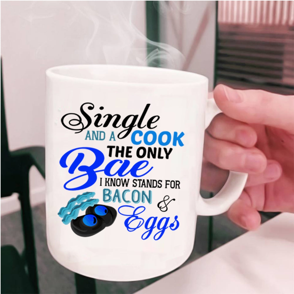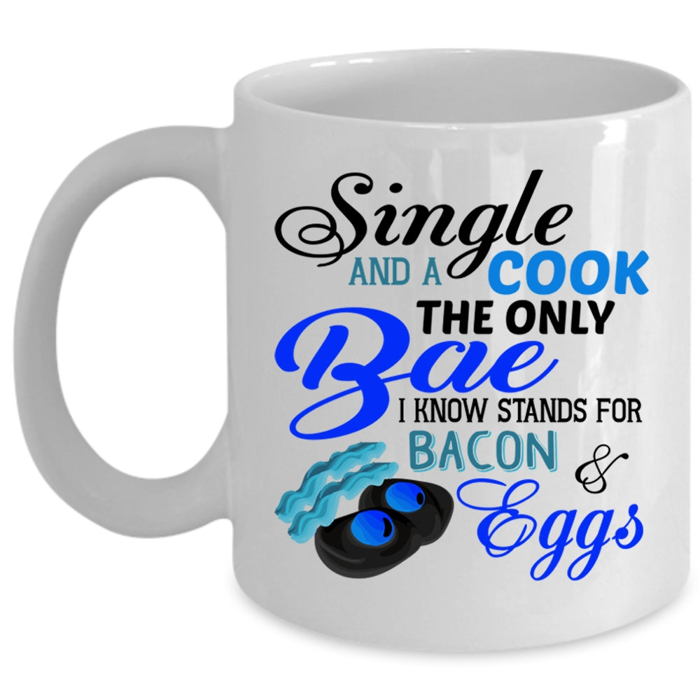 I Know Stands For Bacon And Eggs Coffee Mug, Single And A Cook The Only Bae Cup