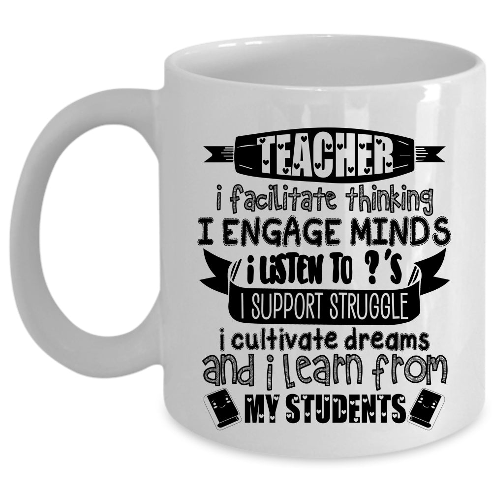 I Learn From My Students Coffee Mug, Teacher I Facilitate Think Cup