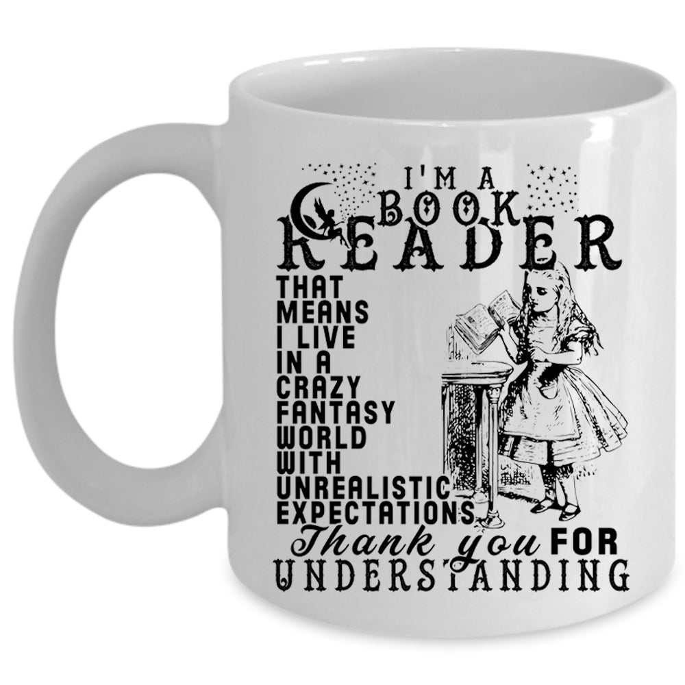 I Live In A Crazy Fantasy World Coffee Mug, I'm A Book Reader Cup