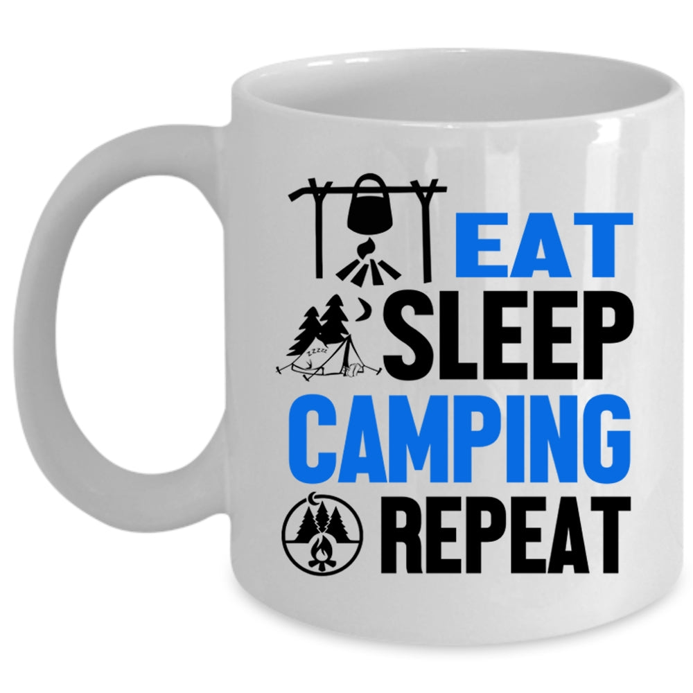 I Love Camping Coffee Mug, Eat Sleep Camping Repeat Cup