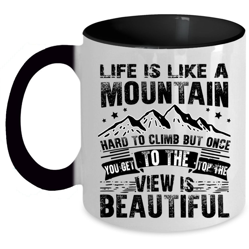 I Love Climbing Coffee Mug, Life Is Like A Mountain Accent Mug
