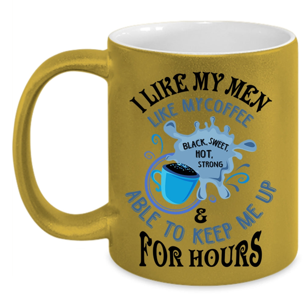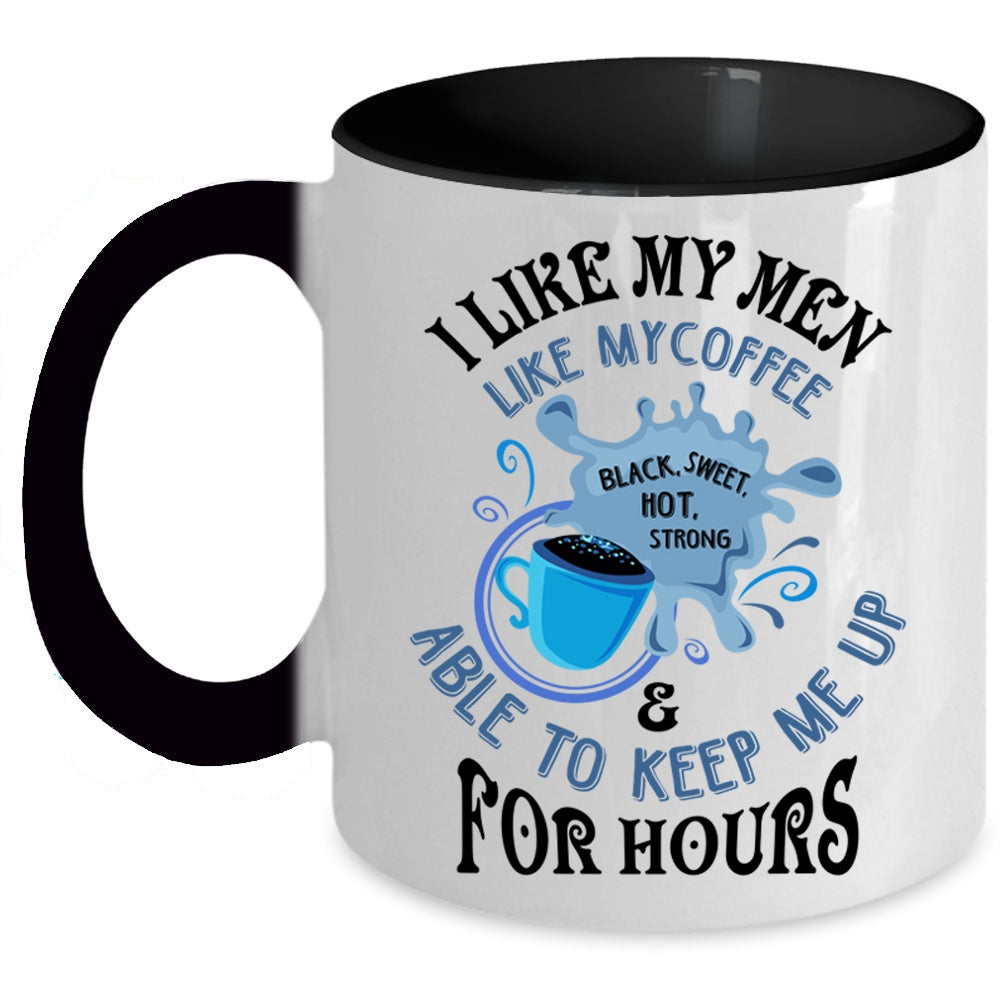 I Love Coffee Coffee Mug, I Like My Men Like My Coffee Accent Mug