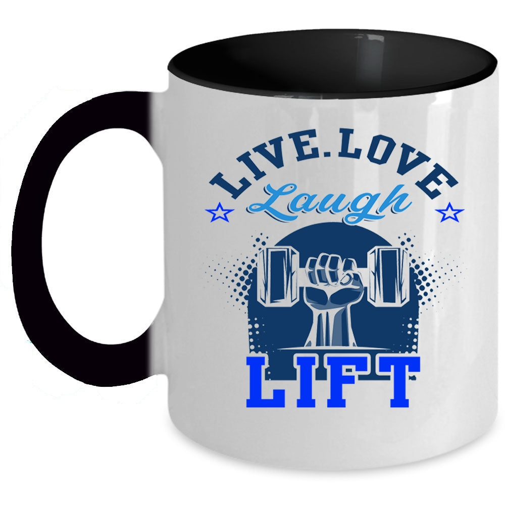 I Love Lifting Coffee Mug, Live Love Laugh Lift Accent Mug
