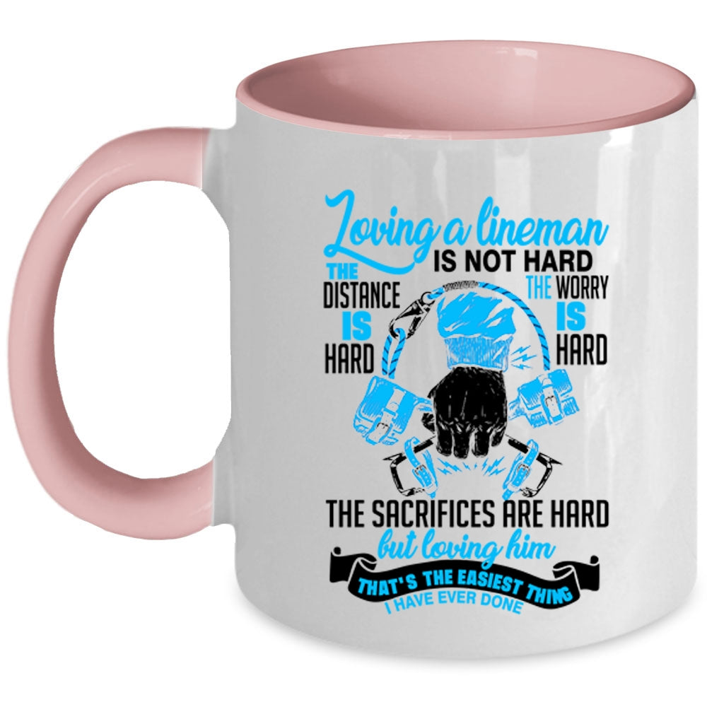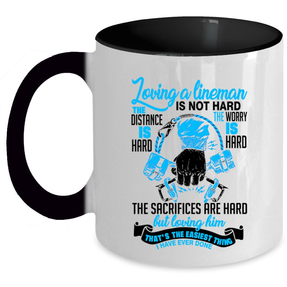I Love Lineman Coffee Mug, Loving A Lineman Is Not Hard Accent Mug