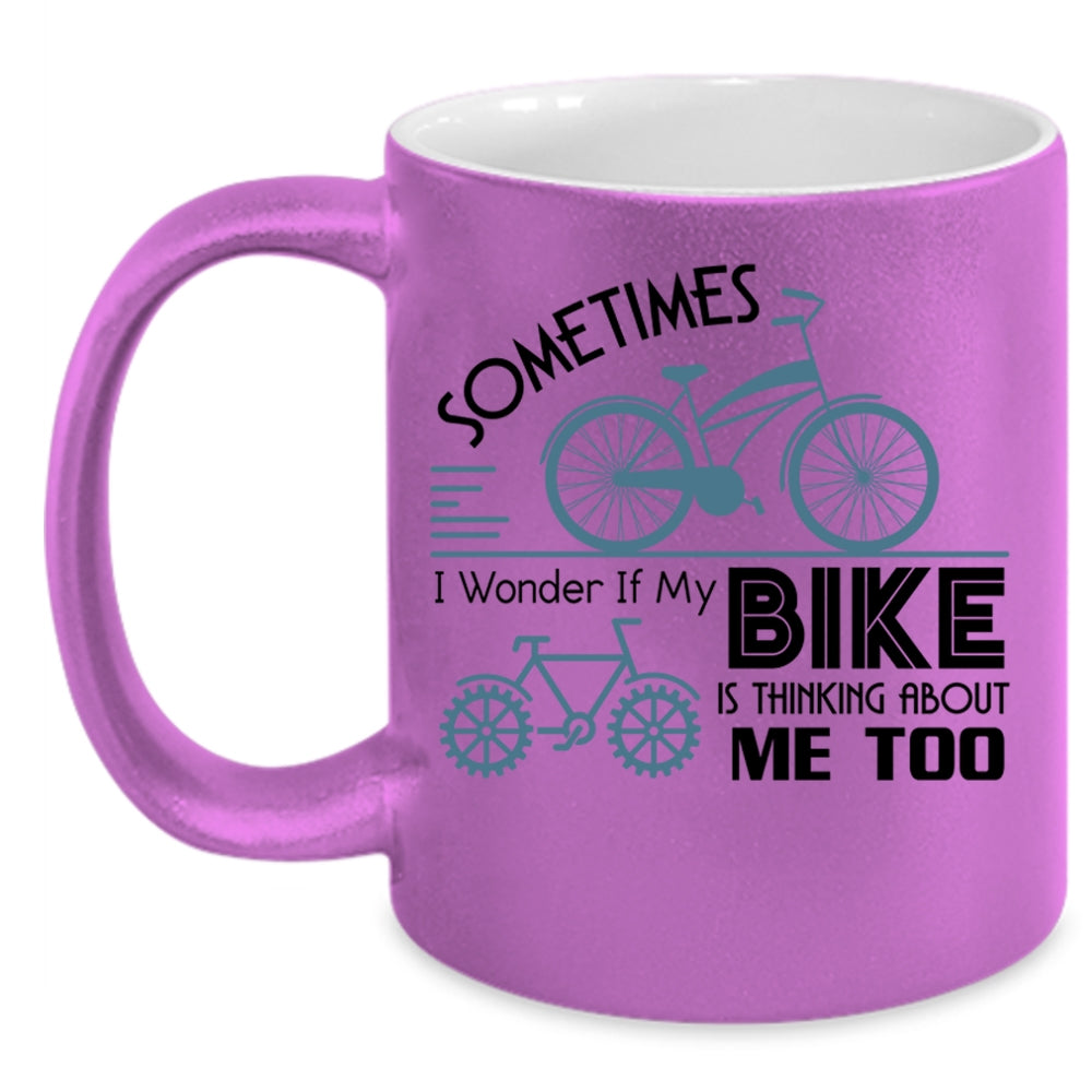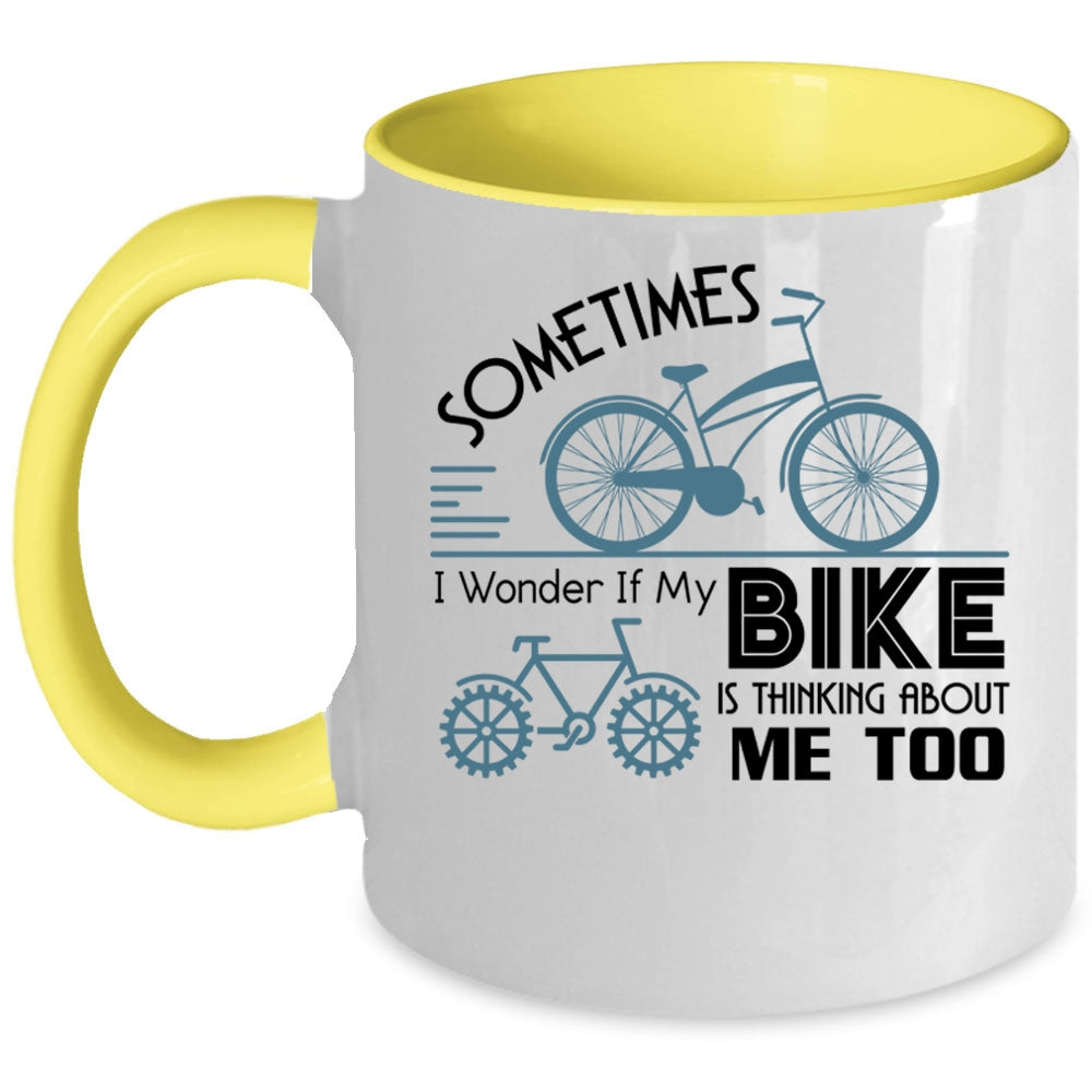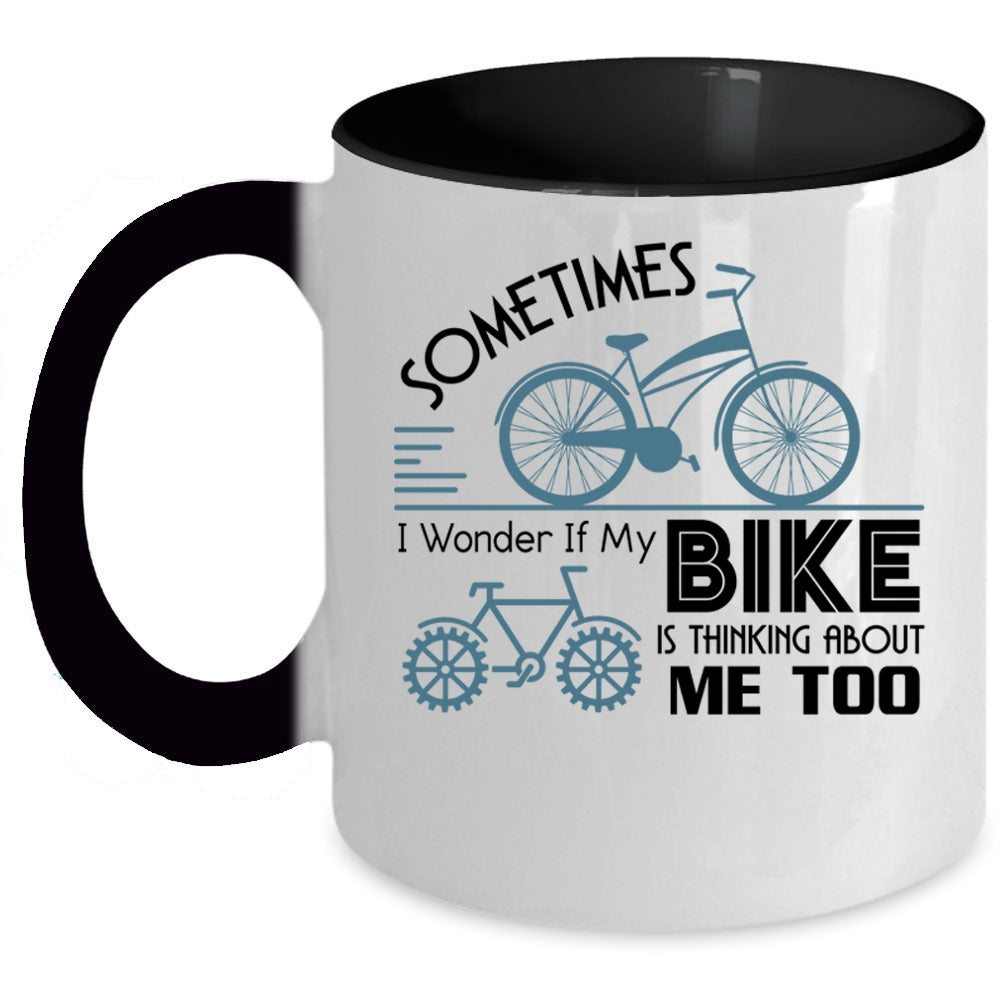 I Love My Bike Coffee Mug, My Bike Is Thinking About Me Too Accent Mug