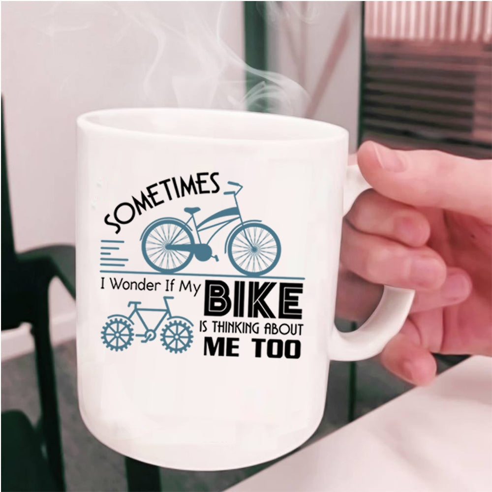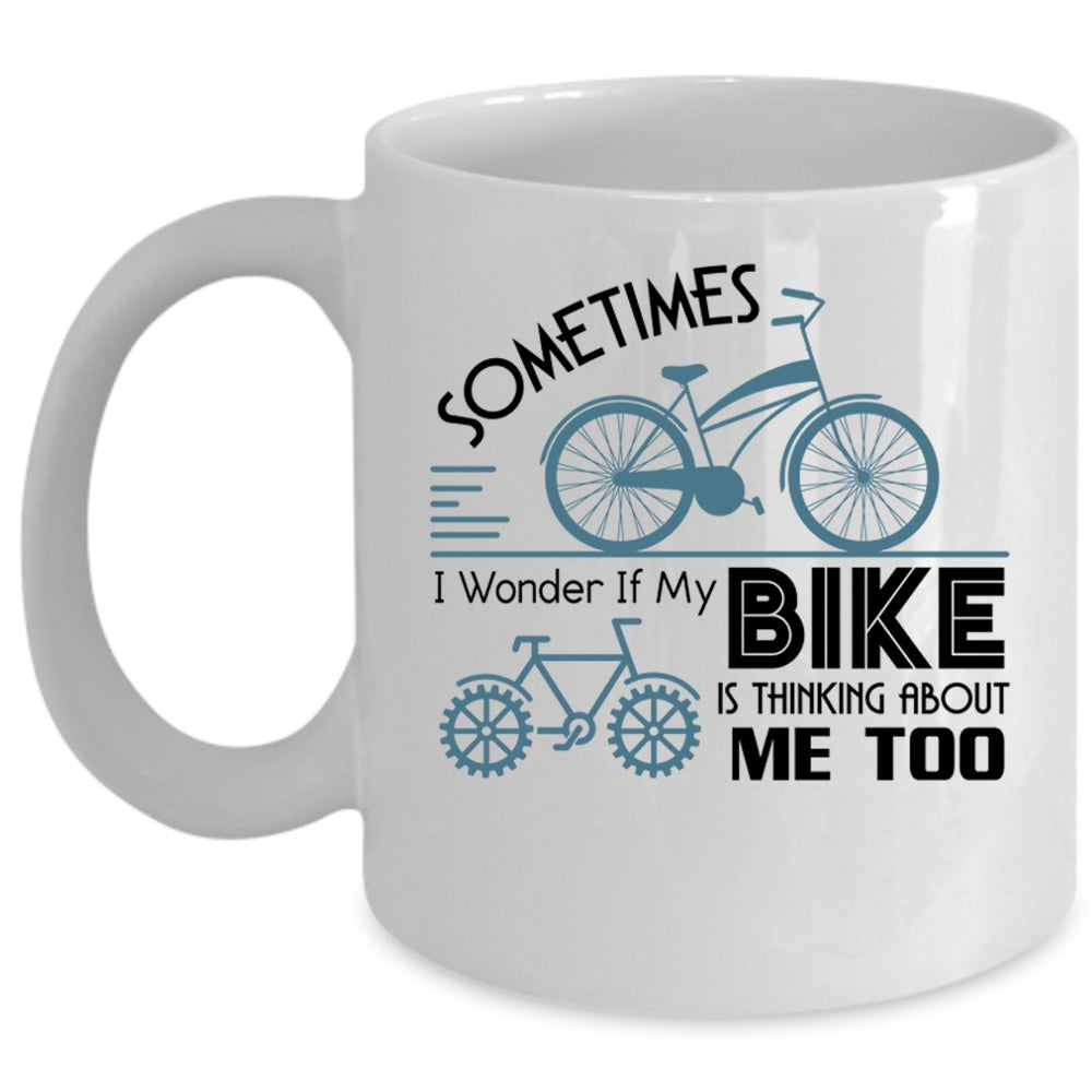 I Love My Bike Coffee Mug, My Bike Is Thinking About Me Too Cup