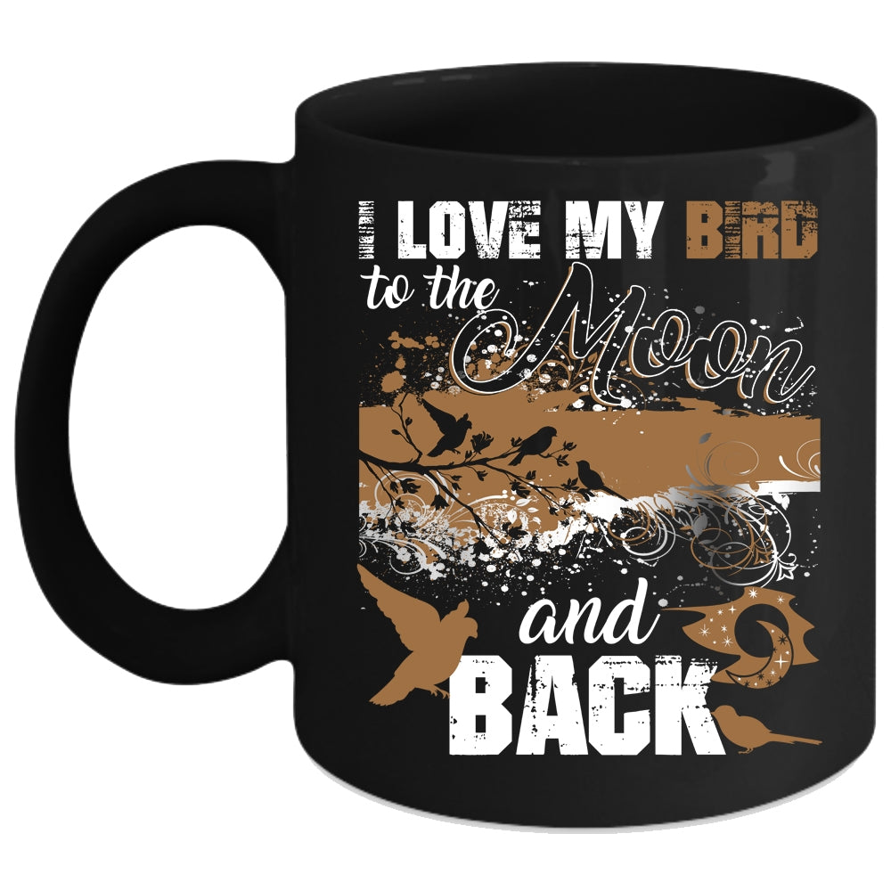 I Love My Bird To The Moon And Back Coffee Mug, Cute Birds Coffee Cup