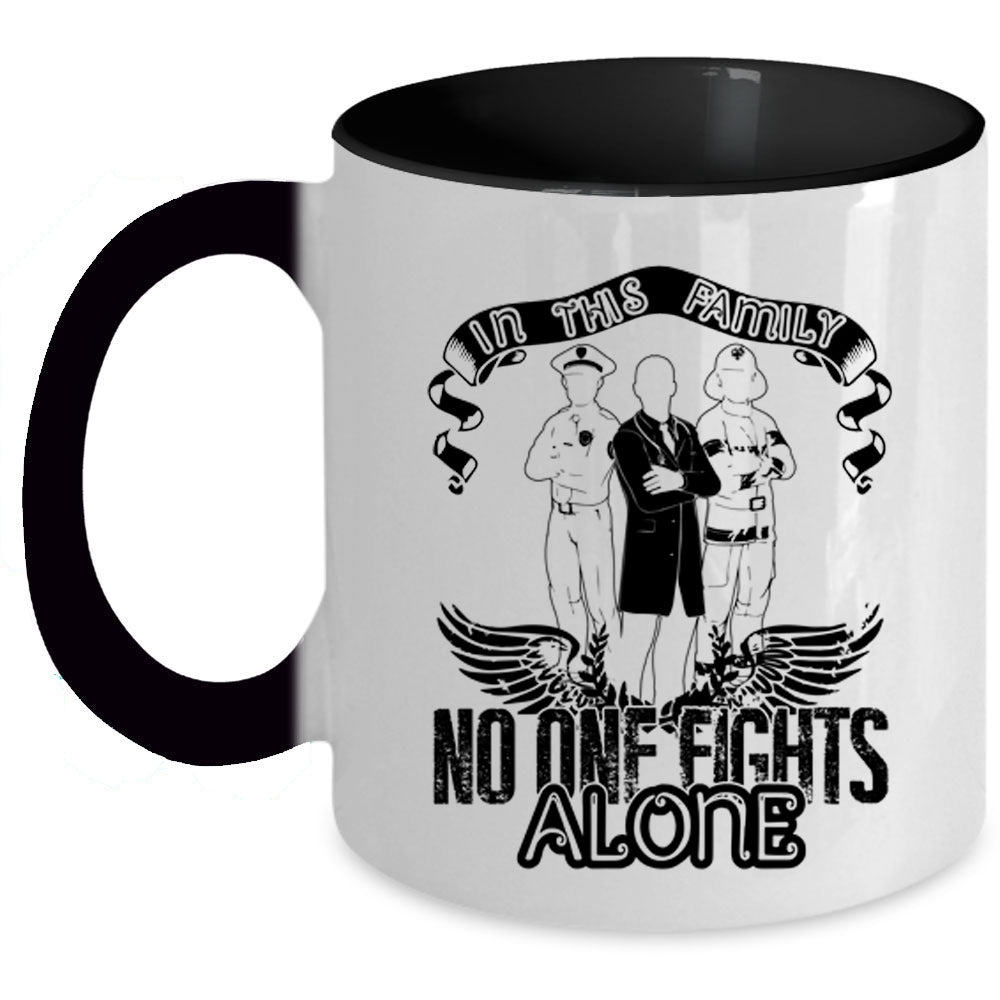 I Love My Family Coffee Mug, In This Family No One Fights Alone Accent Mug