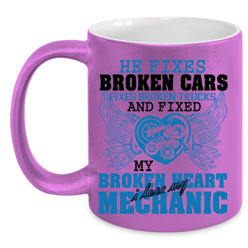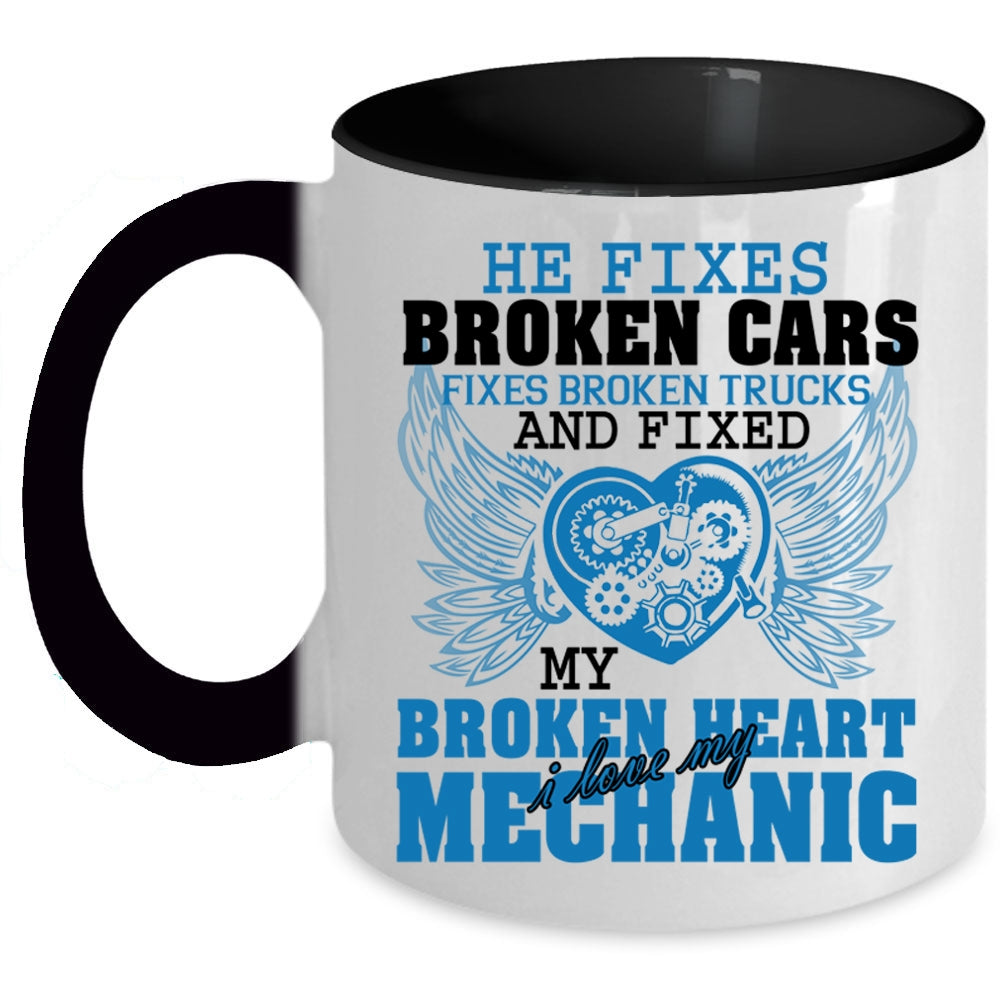 I Love My Mechanic Coffee Mug, Fixed My Broken Heart Accent Mug