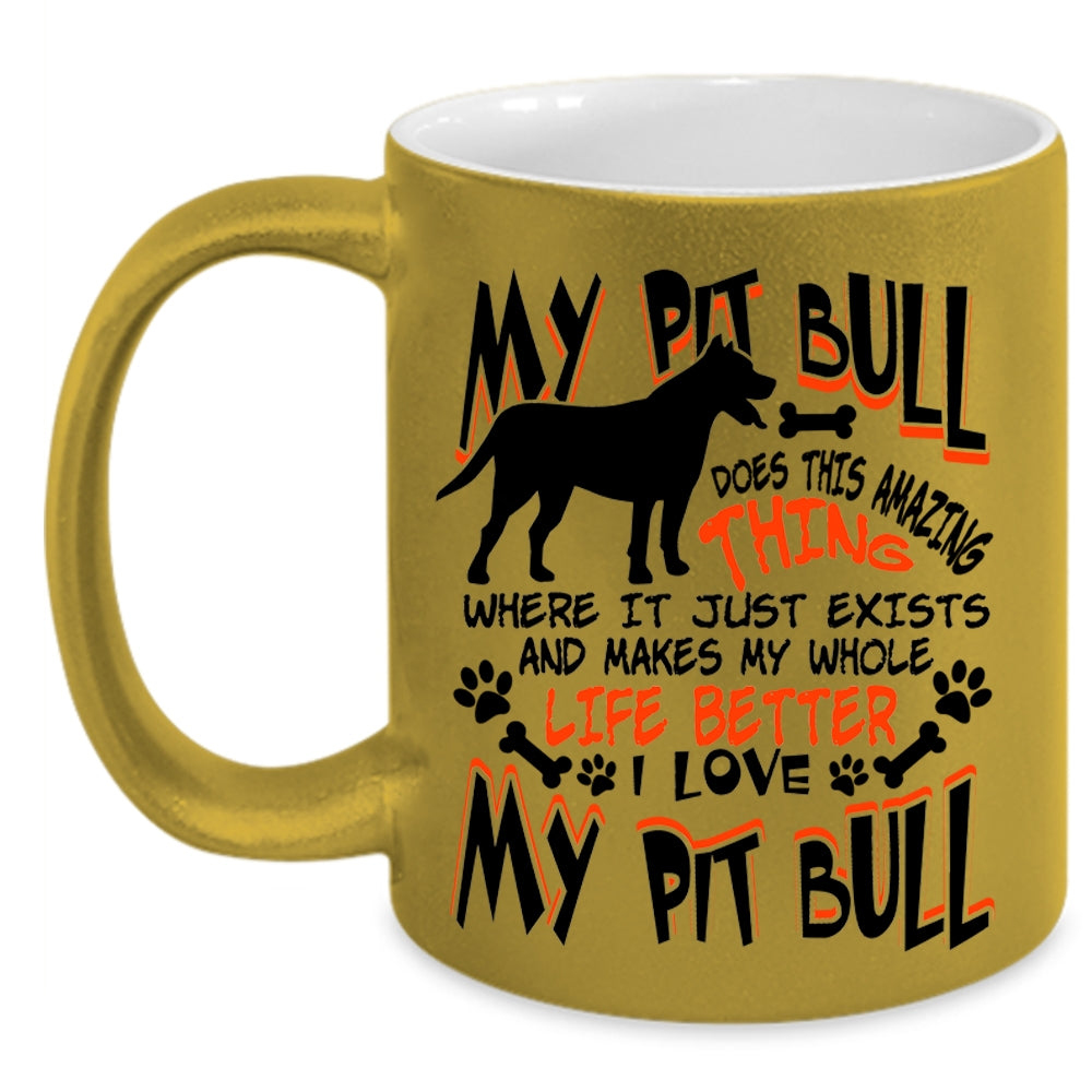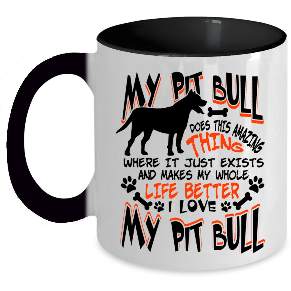 I Love My Pit Bull Coffee Mug, My Pitbull Does This Amazing Thing Accent Mug