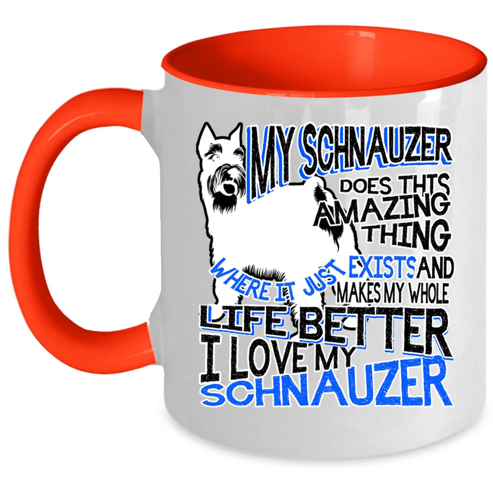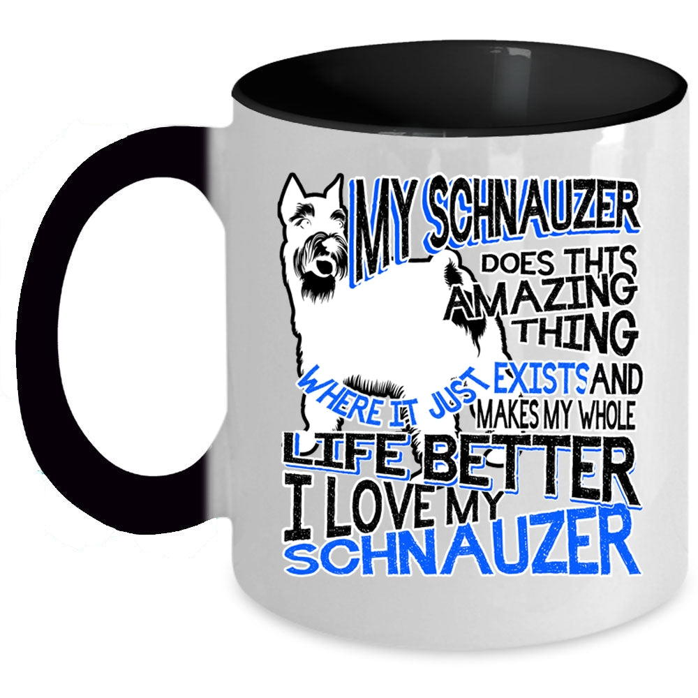 I Love My Schnauzer Coffee Mug, My Schnauzer Does This Amazing Thing Accent Mug