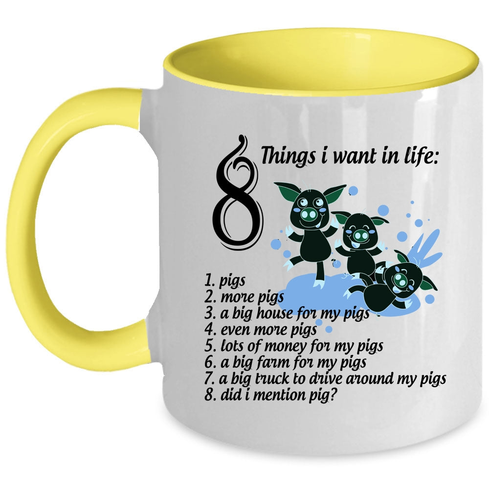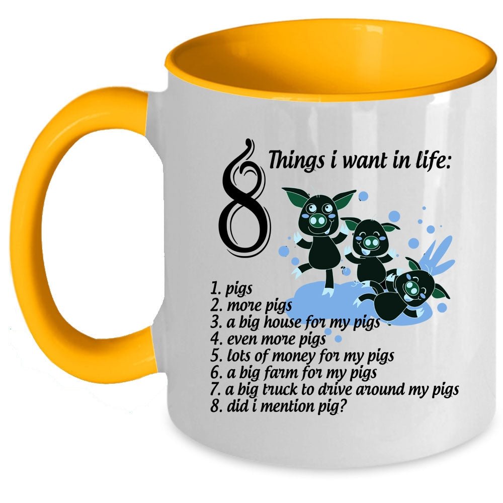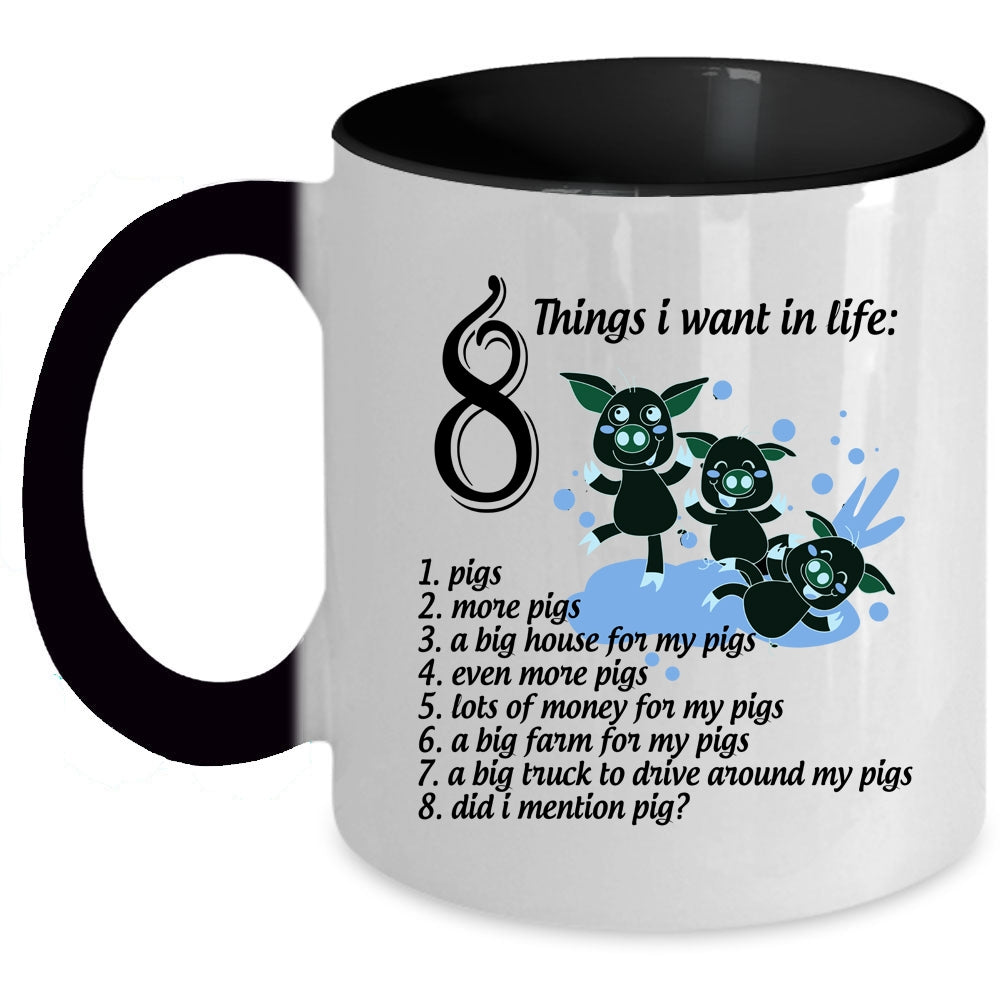I Love Pigs Coffee Mug, 8 Things I Want In Life Accent Mug